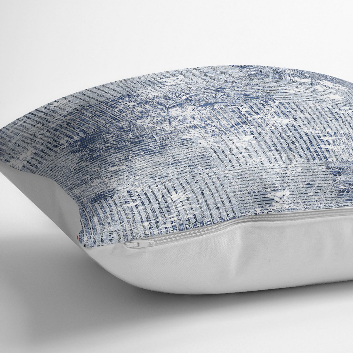 RealHomes Mavi - Beyaz Zeminde Eskitme Motifli Çiçek Desenli Dijital Baskılı Yastık Kırlent Kılıfı Realhomes
