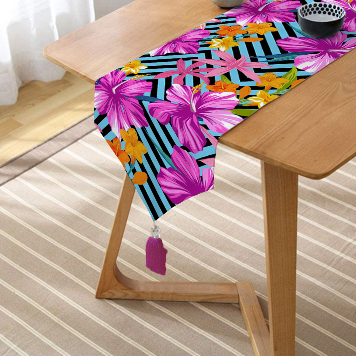 Leke tutmaz özellikli dijital baskılı kumaştan üretilen püsküllü üçgen runnerlar, mutfağınızda, ve yemek odalarında zevkle kullanabileceğiniz şık ve kaliteli ürünlerdir. Günlük kullanıma uygun olduğu gibi özel davetlerinizde de zevkinizi ortaya koyacaktır.