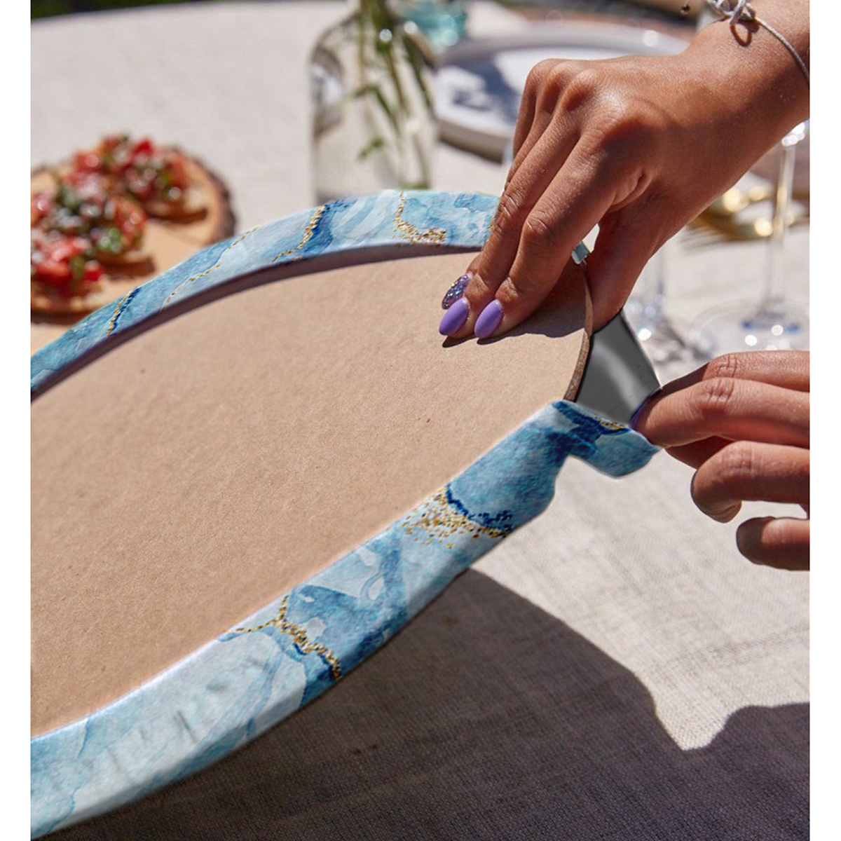 Realhomes Mavi Renkli Mermer Desenli Dijital Baskılı Modern 2’li Yuvarlak Servis Altlığı – Supla