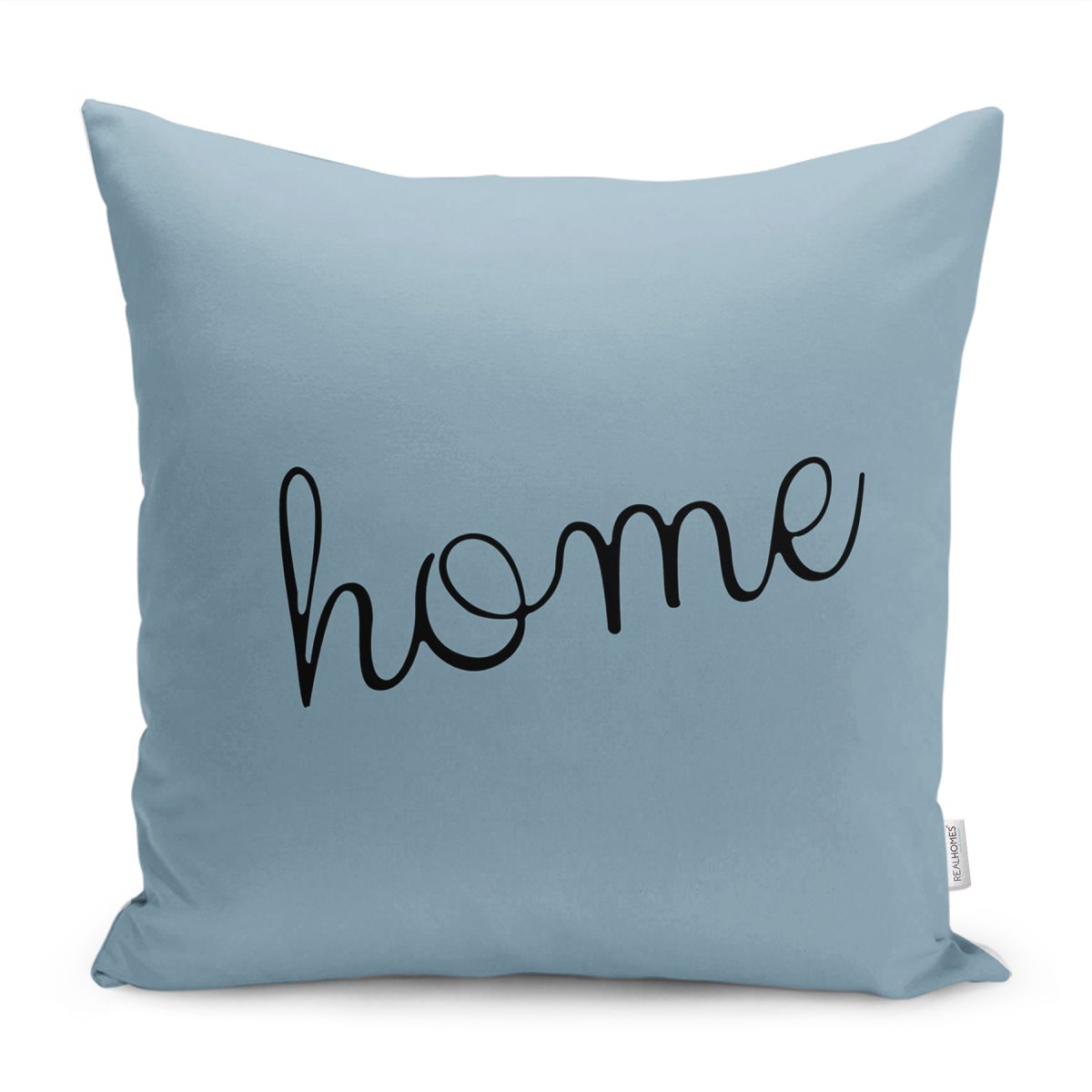 RealHomes Mavi – Siyah Zeminde Home Yazılı Düz Renk Desenli Dijital Baskılı Yastık Kırlent Kılıfı