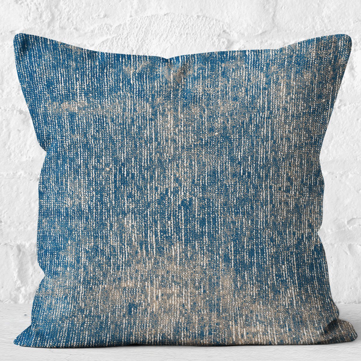 RealHomes Mavi Zeminde Örme Motifli Eskitme Desenli Dijital Baskılı Yastık Kırlent Kılıfı
