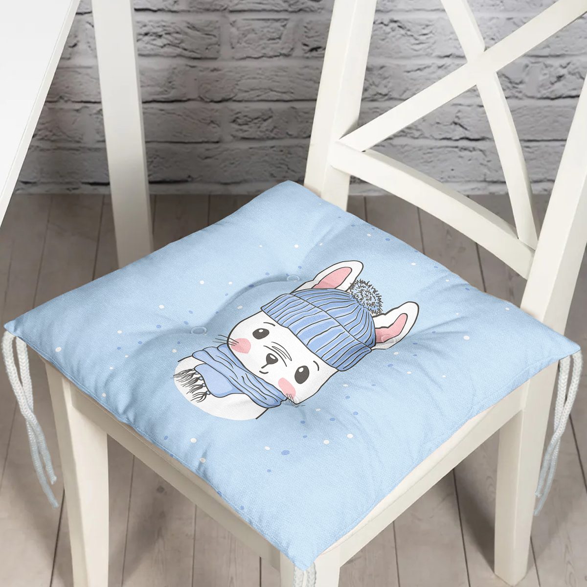 Realhomes Mavi Zeminde Sevimli Tavşan Motifli Modern Pofuduk Sandalye Minderi