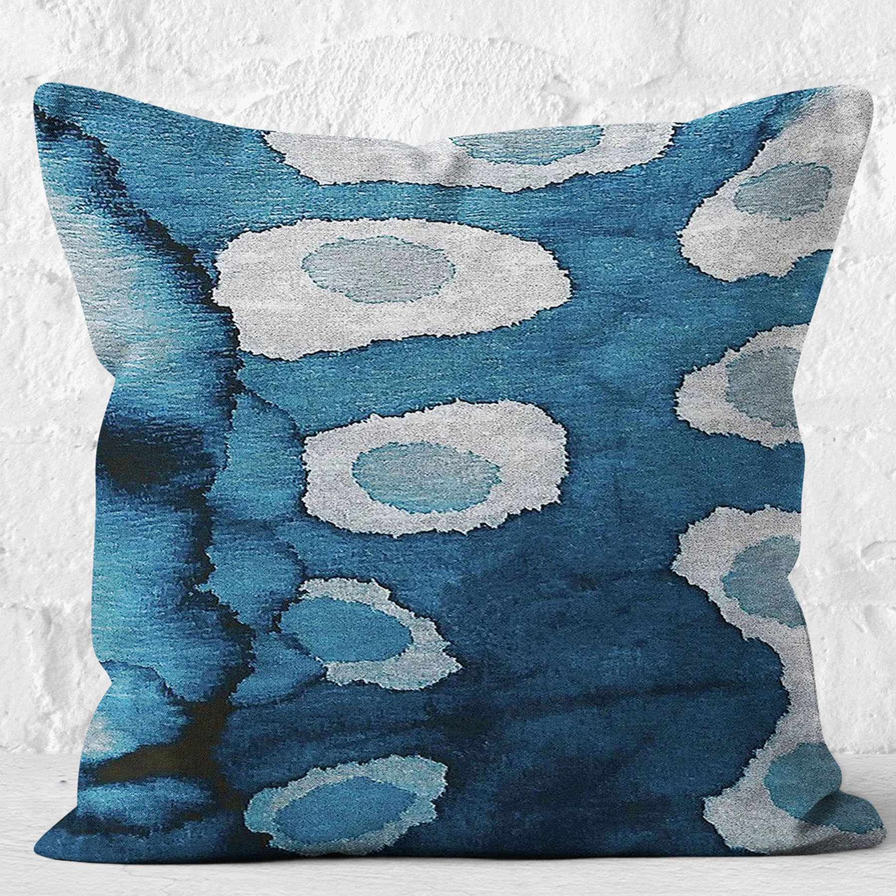 RealHomes Mavi Zeminde Sulu Boya Motifli Modern Sanat Desenli Dijital Baskılı Yastık Kırlent Kılıfı