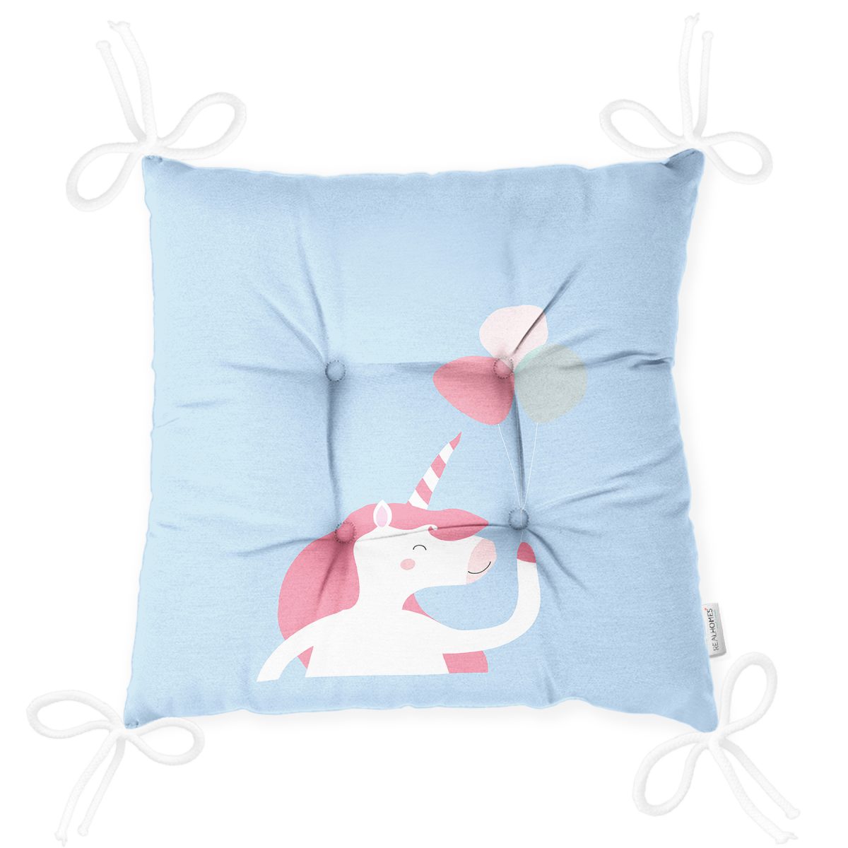 Realhomes Mavi Zeminde Unicorn At Tasarımlı Modern Pofuduk Sandalye Minderi