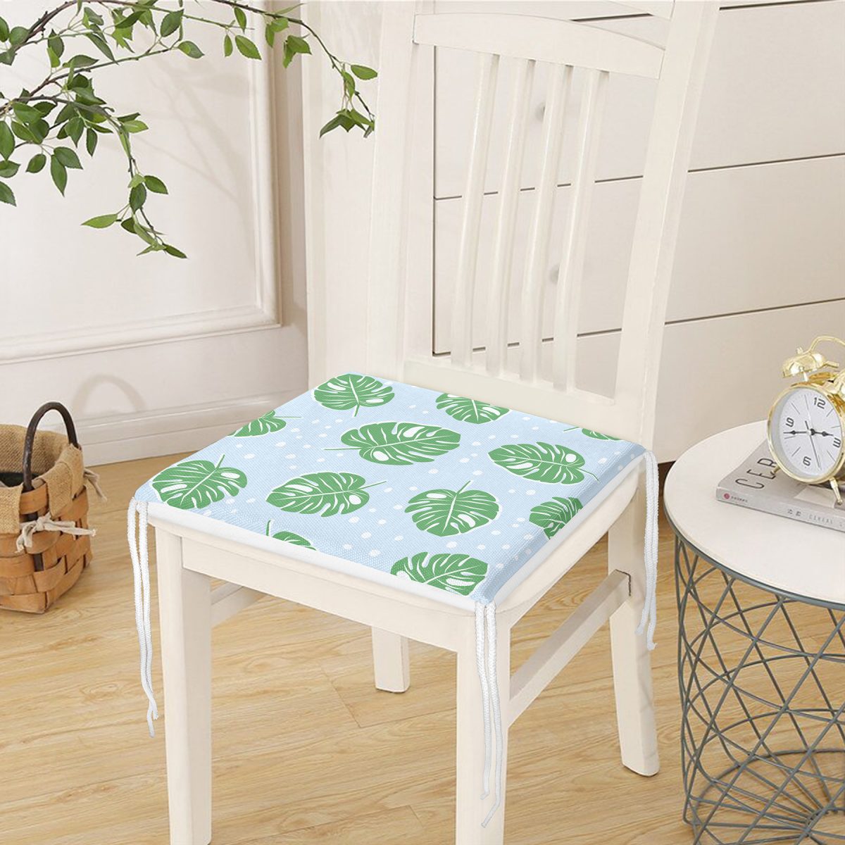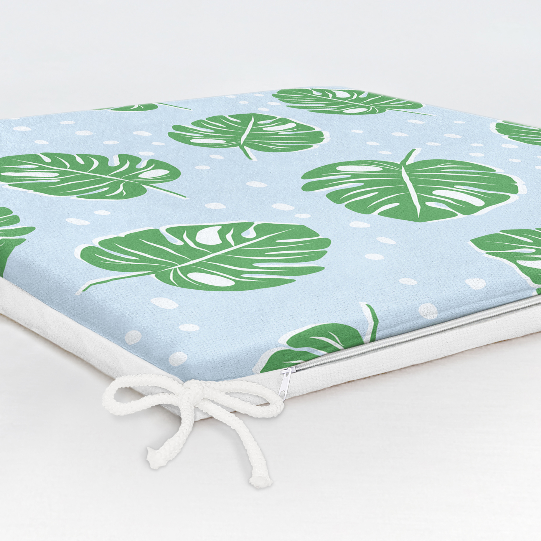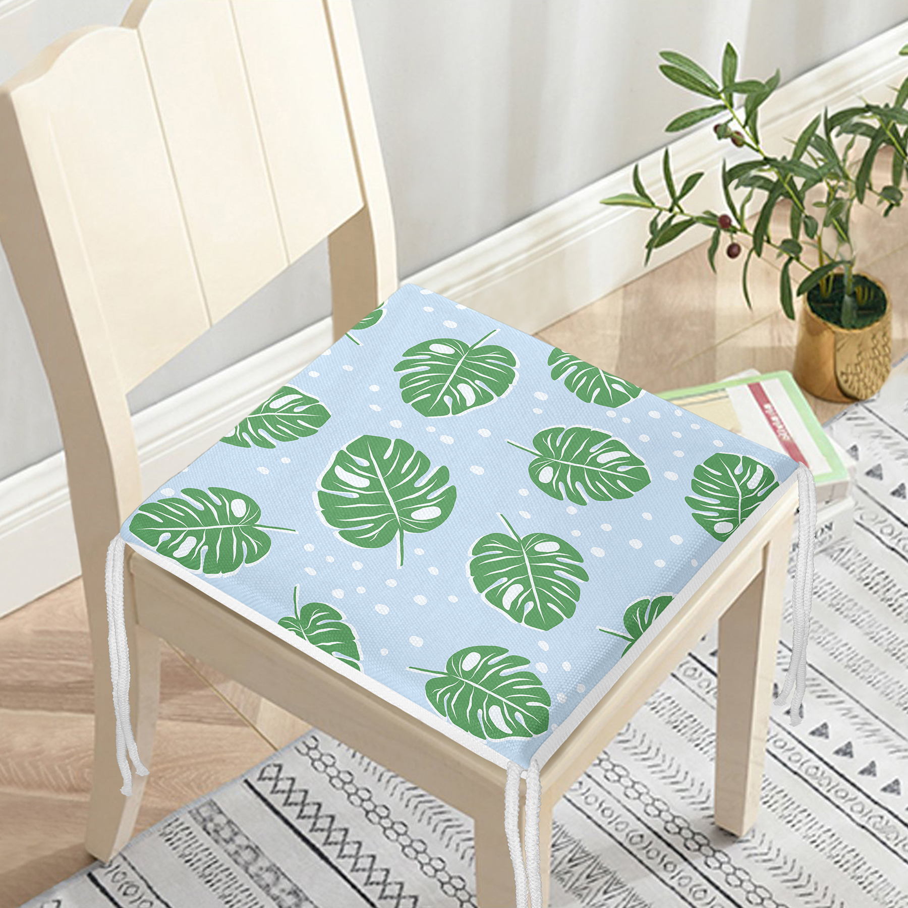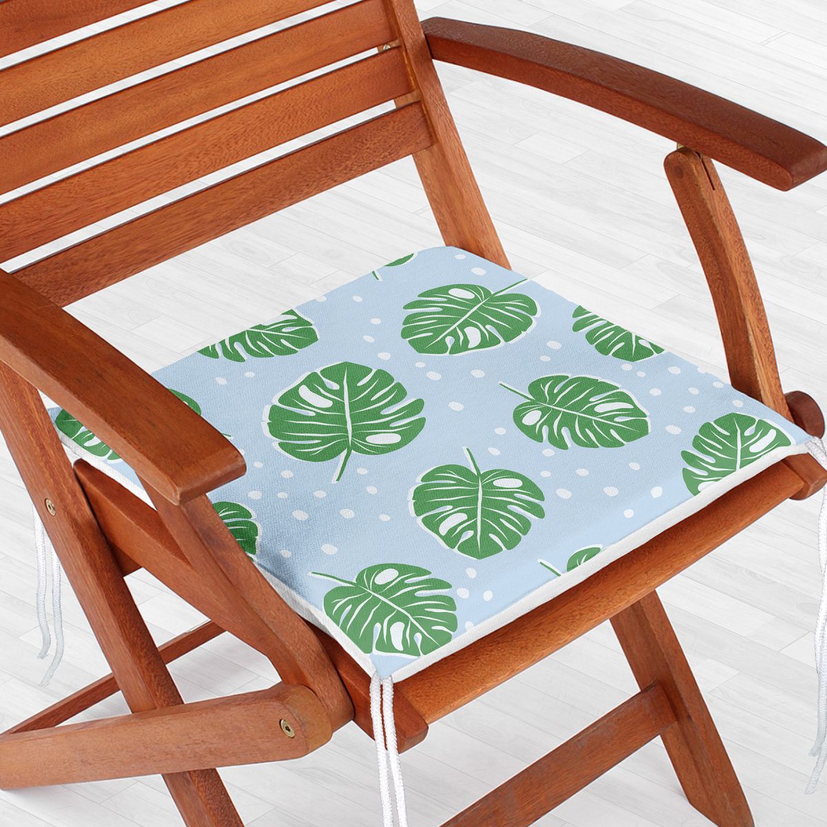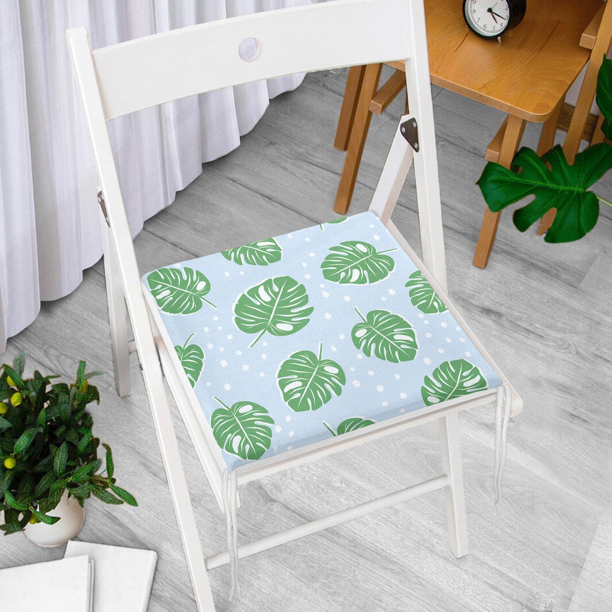 Realhomes Mavi Zeminde Yapraklar Dijital Baskılı Modern Sandalye Minderi Realhomes