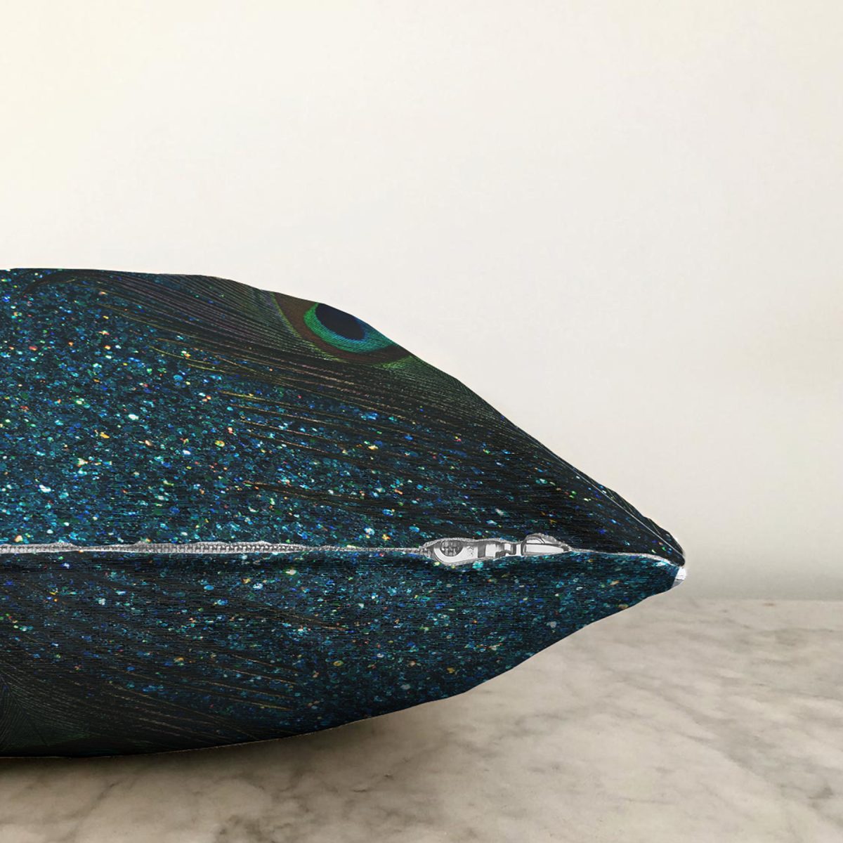 Realhomes Mavi Zeminli Tavuskuşu Motifli Özel Tasarım Yastık Kırlent Kılıfı