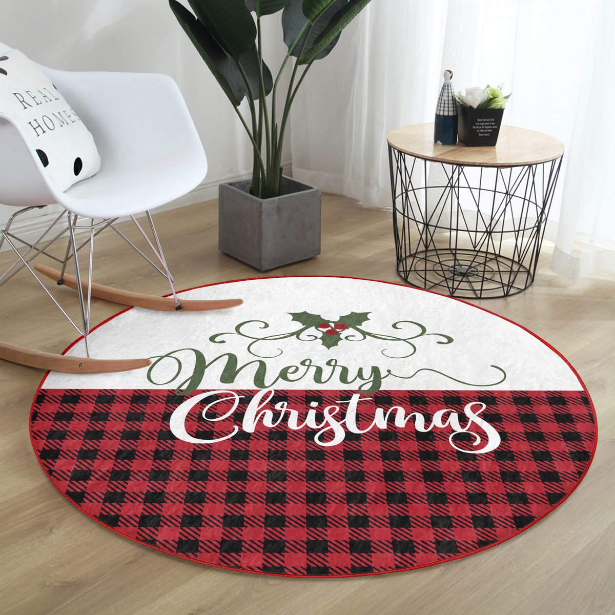 Realhomes Mery Christmas Temalı Ekose Tasarımlı Modern Bordo Outdoor Yıkanabilir Kaymaz Tabanlı Yuvarlak Halı