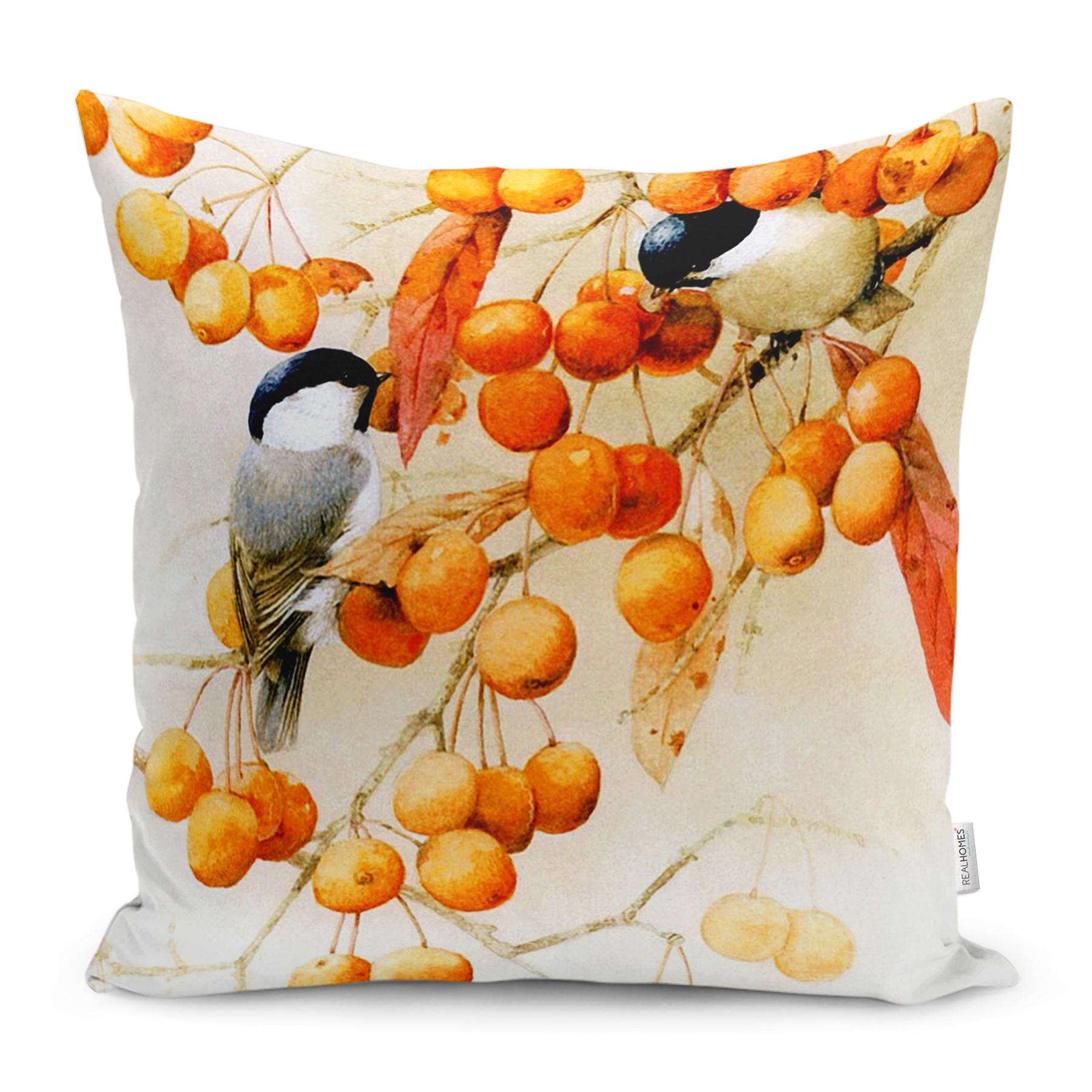 Realhomes Meyve Dalları Saka Kuşları Tasarımlı Dijital Baskılı Modern Yastık Kırlent Kılıfı