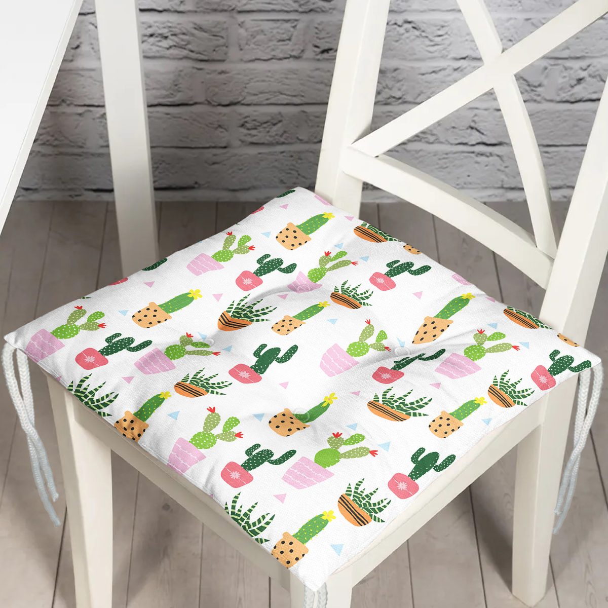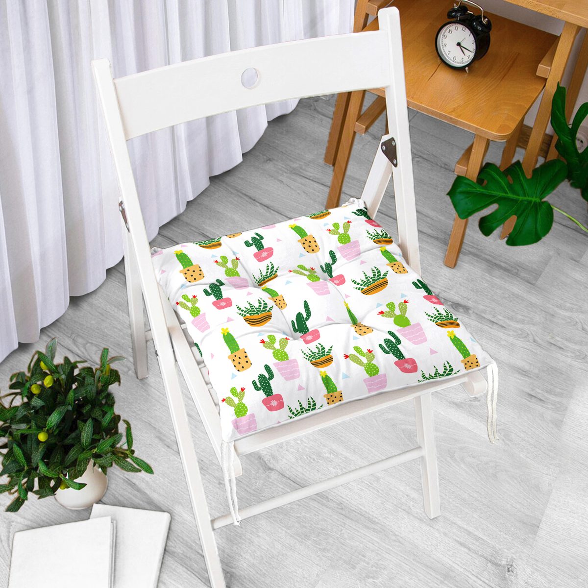 Realhomes Minik Kaktüs Tasarımlı Dijital Baskılı Modern Pofuduk Sandalye Minderi