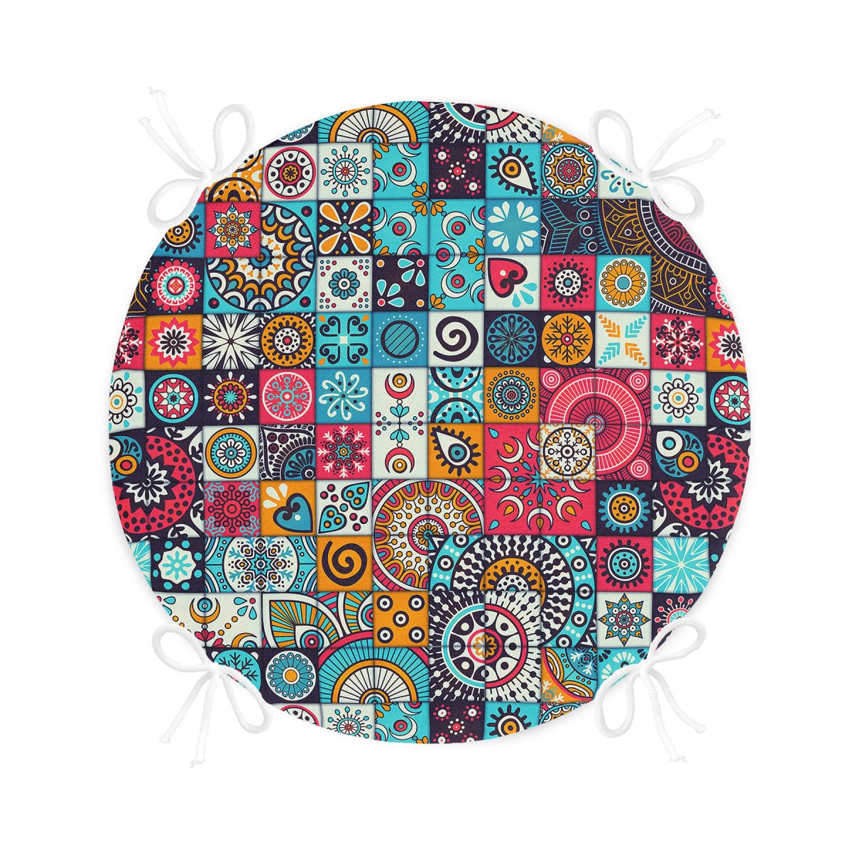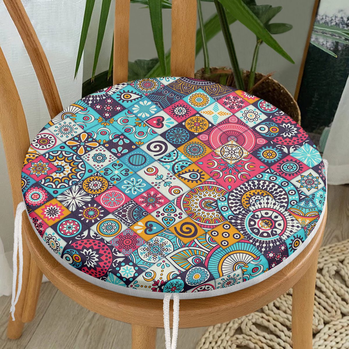Realhomes Mozaik Desenli Özel Tasarım Yuvarlak Fermuarlı Sandalye Minderi