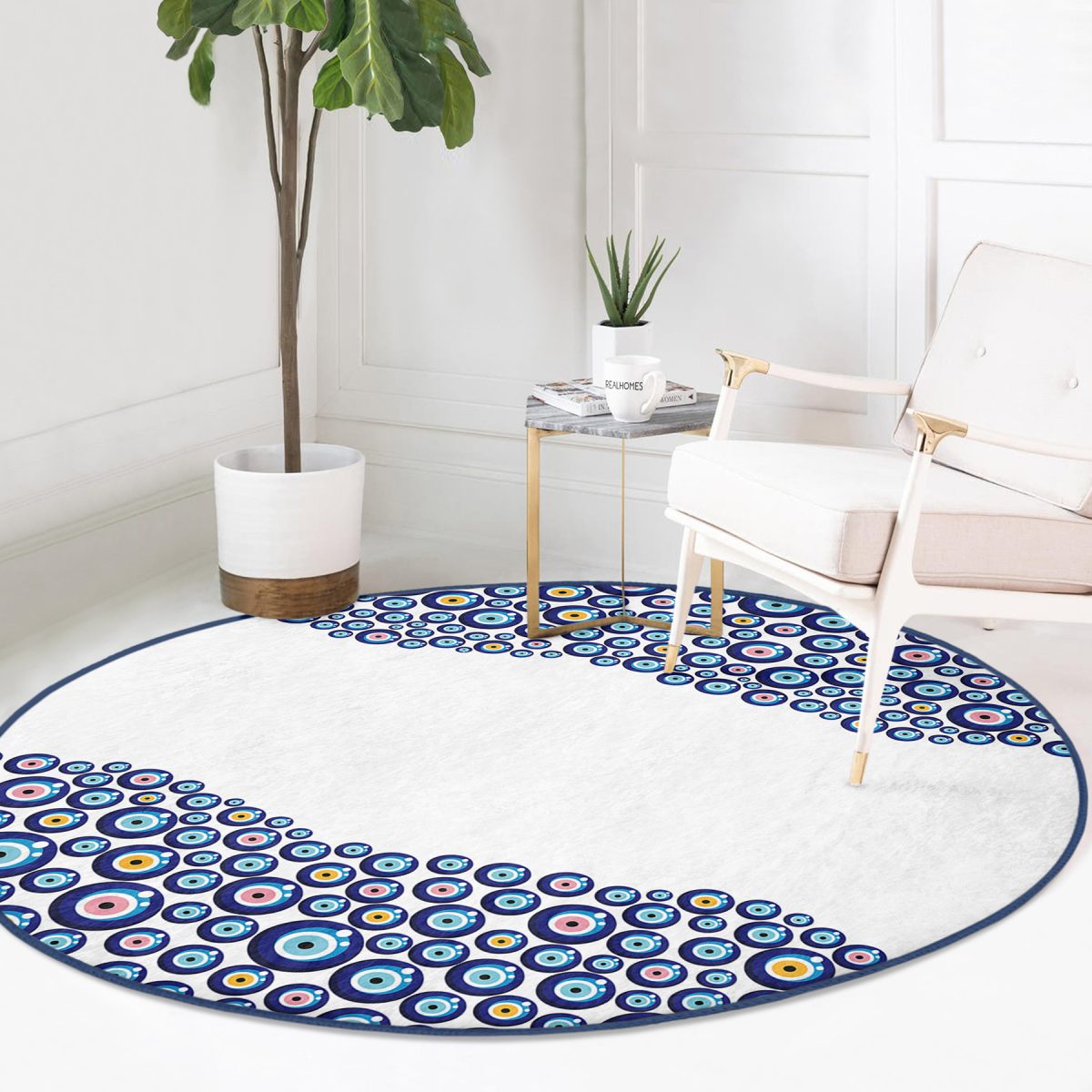 Realhomes Nazar Boncuğu Motifli Dijital Baskılı Modern Lacivert Koridor ve Antre Yıkanabilir Kaymaz Tabanlı Yuvarlak Halı