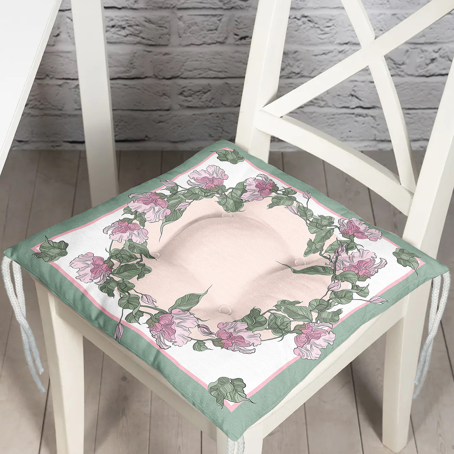 RealHomes Dijital Baskılı Pofuduk Düğmeli Sandalye Minderi