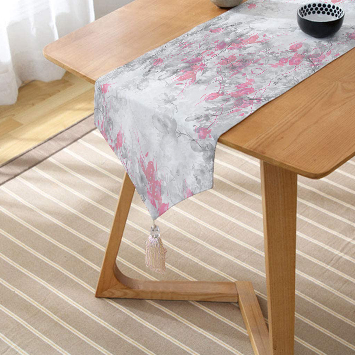 Realhomes Özel Tasarım Dijital Baskılı Modern Püsküllü Şönil Üçgen Runner