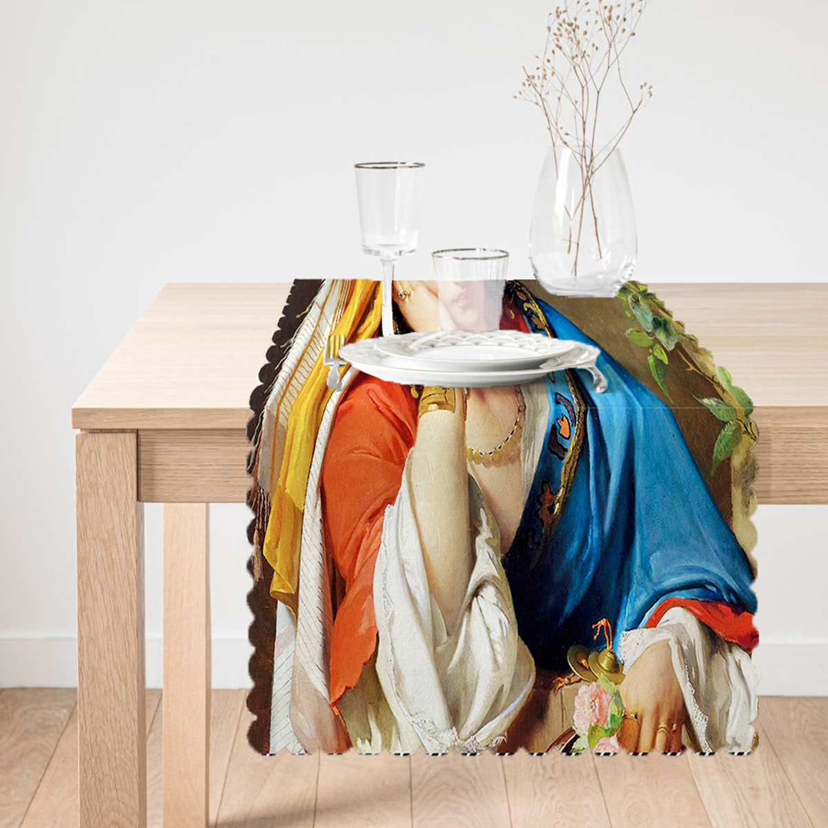 Masa Örtülerimizin kenar detayında oryantal işleme bulunmaktadır. İsteğe bağlı olarak kenar detayı düz kesim olarak değiştirilebilir.