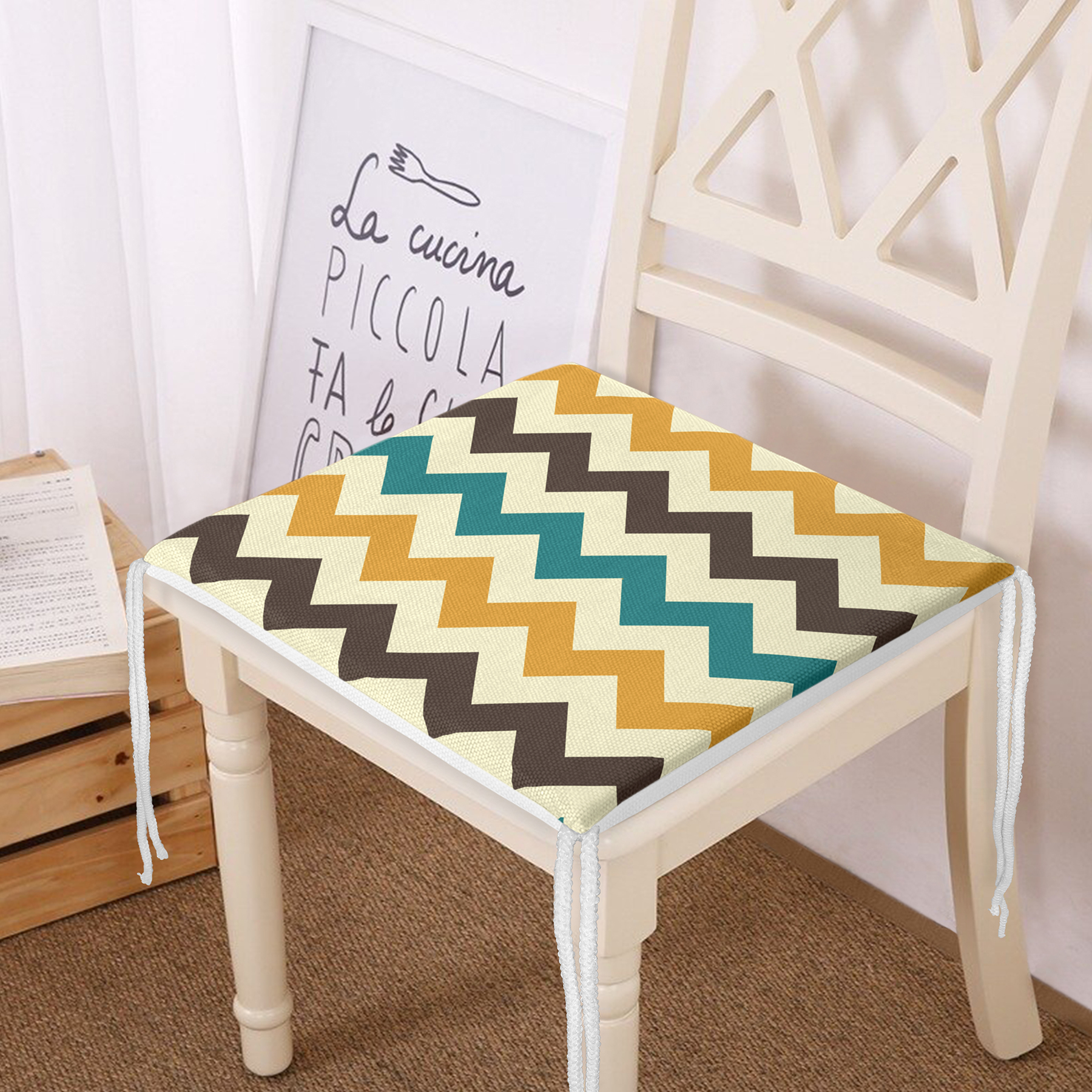 RealHomes Dijital Baskılı Fermuarlı Sandalye Minderi, kumaş seçimi ve desen detaylarıyla şık bir dekorasyon ögesi olarak kullanımınıza sunulmaktadır. Her bir desen RealHomes tasarımcıları tarafından özenle tasarlanmış ve satışa sunulmuştur. Fotoğraf kalitesinde canlı ve gerçekçi baskılarımız yıkamaya ve kullanıma bağlı olarak solma yapmaz, yıllar boyu ilk günkü özelliğini korur.