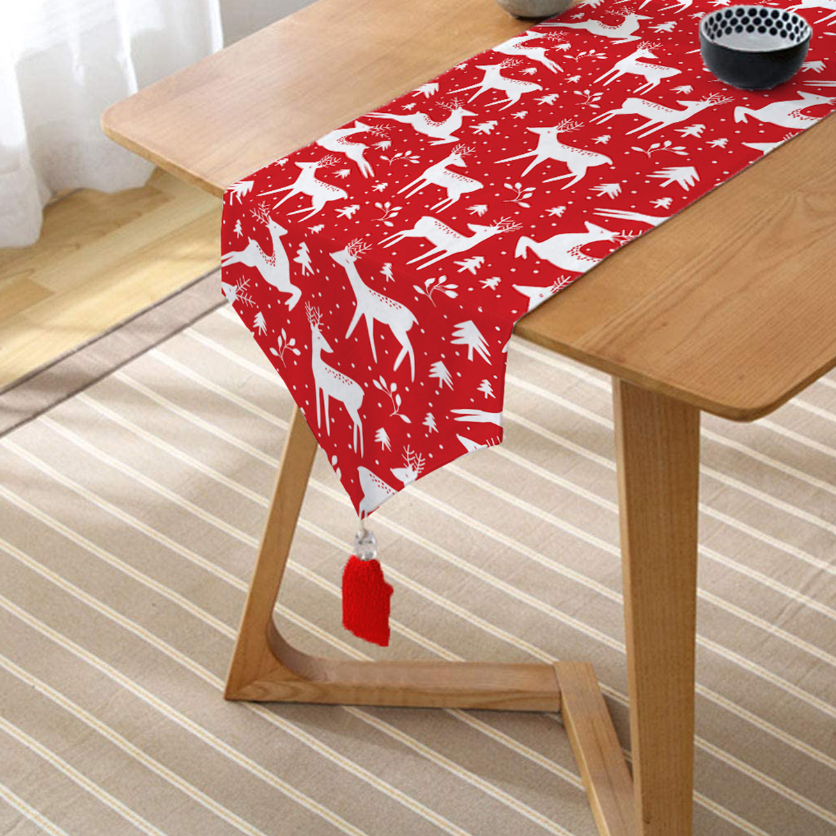 Leke tutmaz özellikli dijital baskılı kumaştan üretilen püsküllü üçgen runnerlar, mutfağınızda, ve yemek odalarında zevkle kullanabileceğiniz şık ve kaliteli ürünlerdir. Günlük kullanıma uygun olduğu gibi özel davetlerinizde de zevkinizi ortaya koyacaktır.