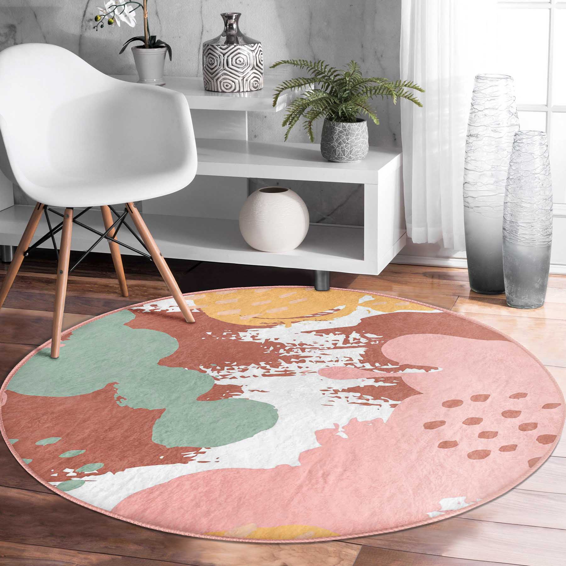 Realhomes Özel Tasarımlı Renkli Salon ve Oturma Odası Yıkanabilir Kaymaz Tabanlı Yuvarlak Halı