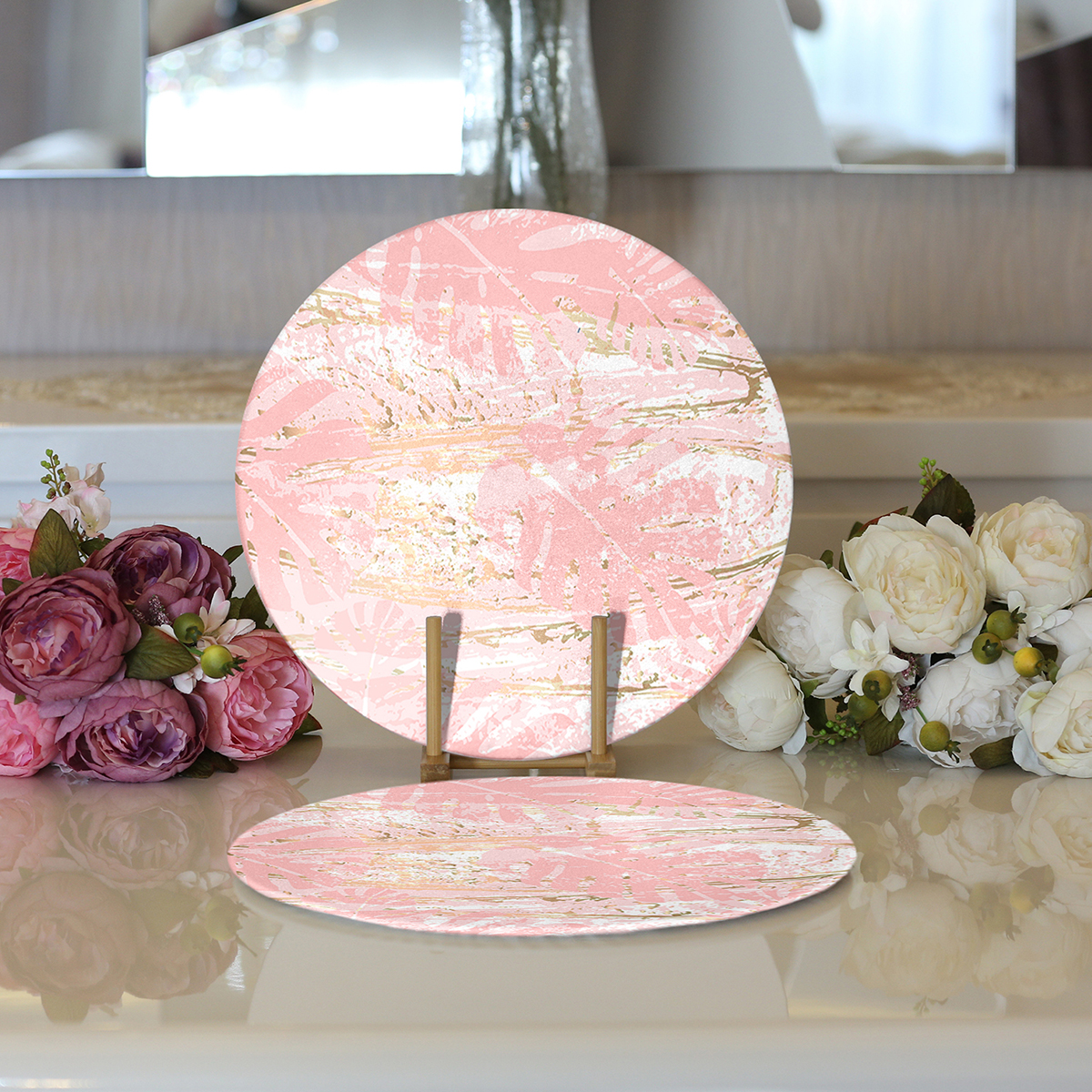 Realhomes Palmiye Desenli Mermer Zeminli Modern 2’li Yuvarlak Servis Altlığı – Supla
