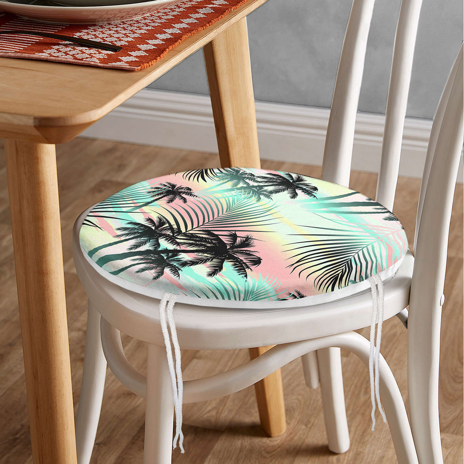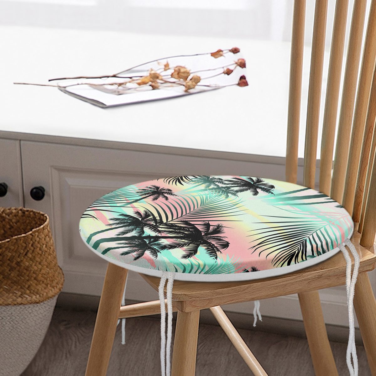 Realhomes Palmiye Yaprakları Yuvarlak Fermuarlı Sandalye Minderi