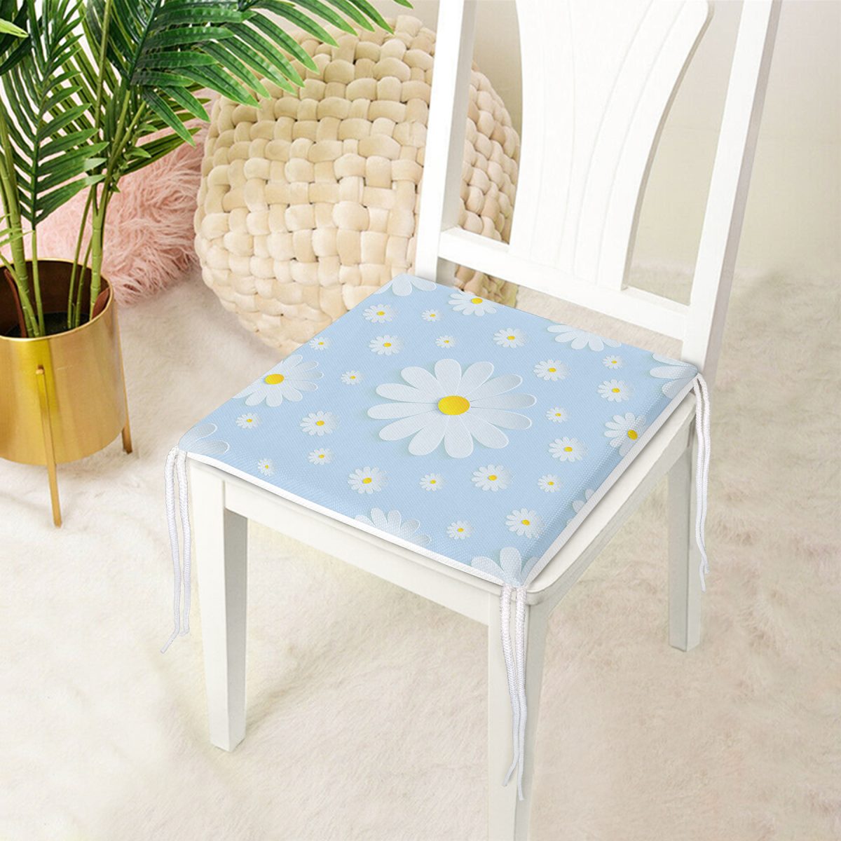 Realhomes Papatya Desenli Dijital Baskılı Modern Sandalye Minderi Realhomes