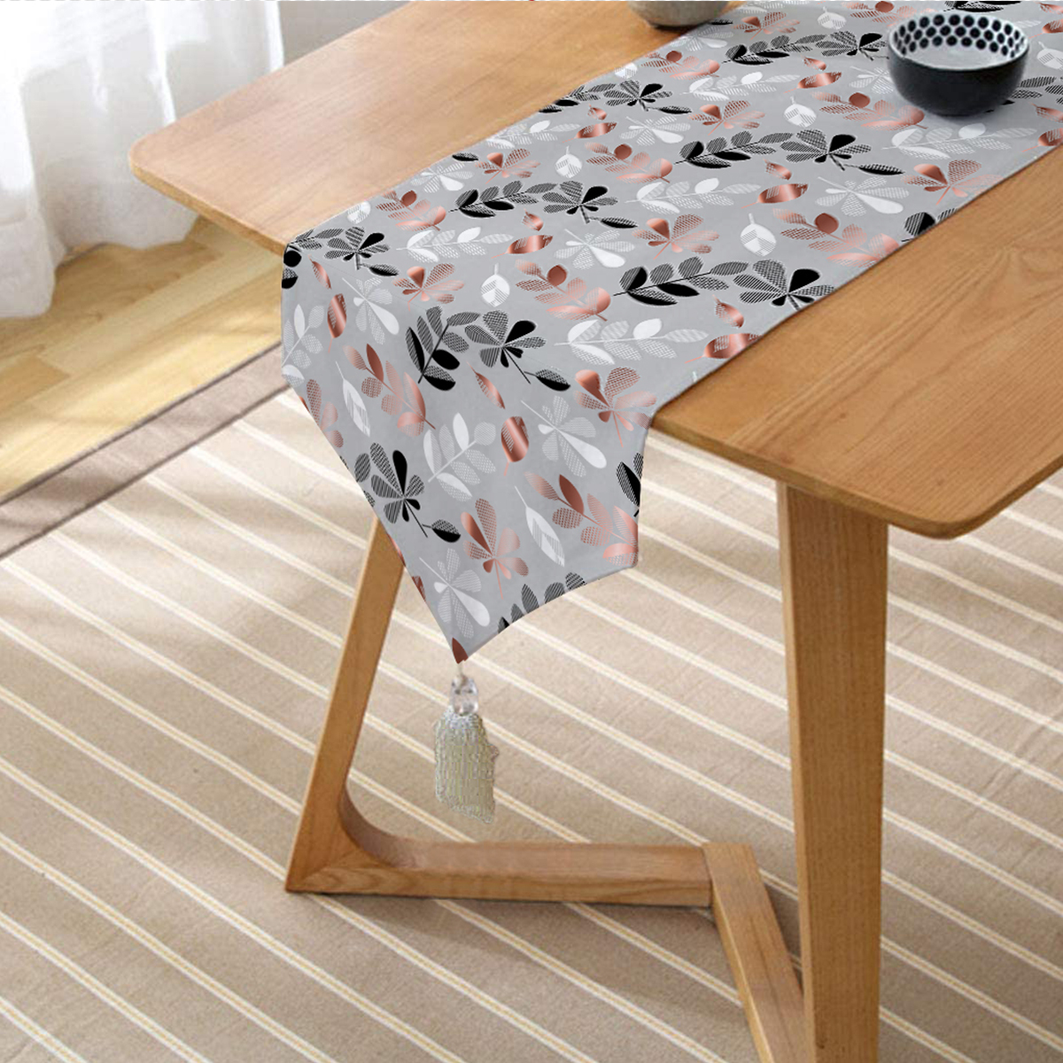Realhomes Pastel Zemin Üzerinde Yaprak Desenli Dijital Baskılı Özel Tasarım Püsküllü Şönil Üçgen Runner