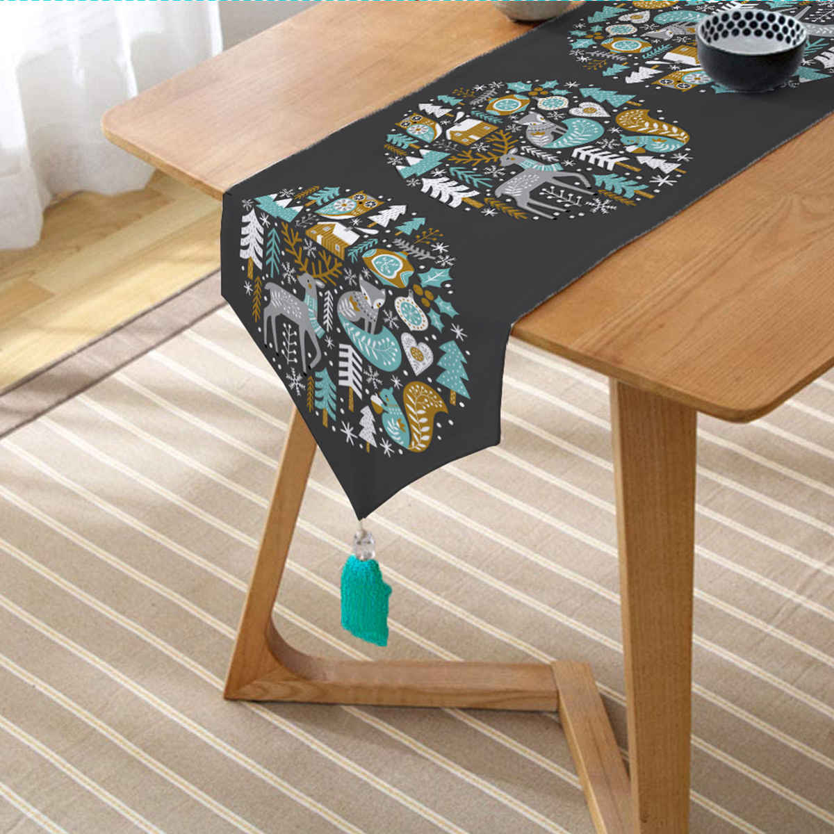 Realhomes Pastel Zemin Üzerinde Yılbaşı Desenli Dijital Baskılı Özel Tasarım Püsküllü Şönil Üçgen Runner