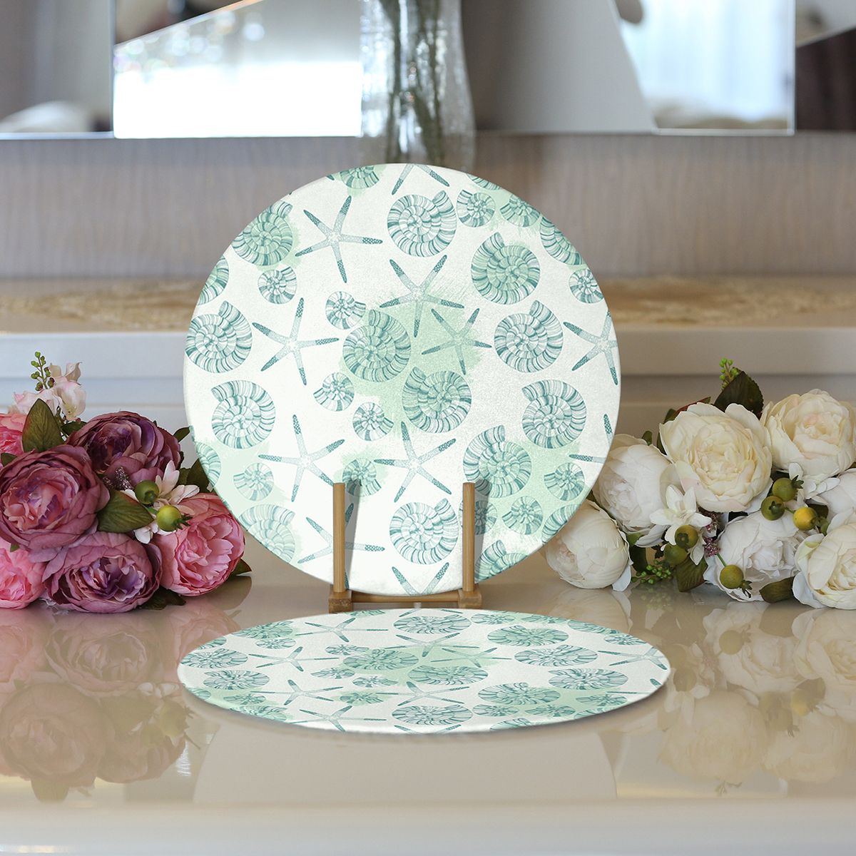 Realhomes Pastel Zeminli Deniz Yıldızı Desenli Dijital Baskılı Modern 2’li Yuvarlak Servis Altlığı – Supla