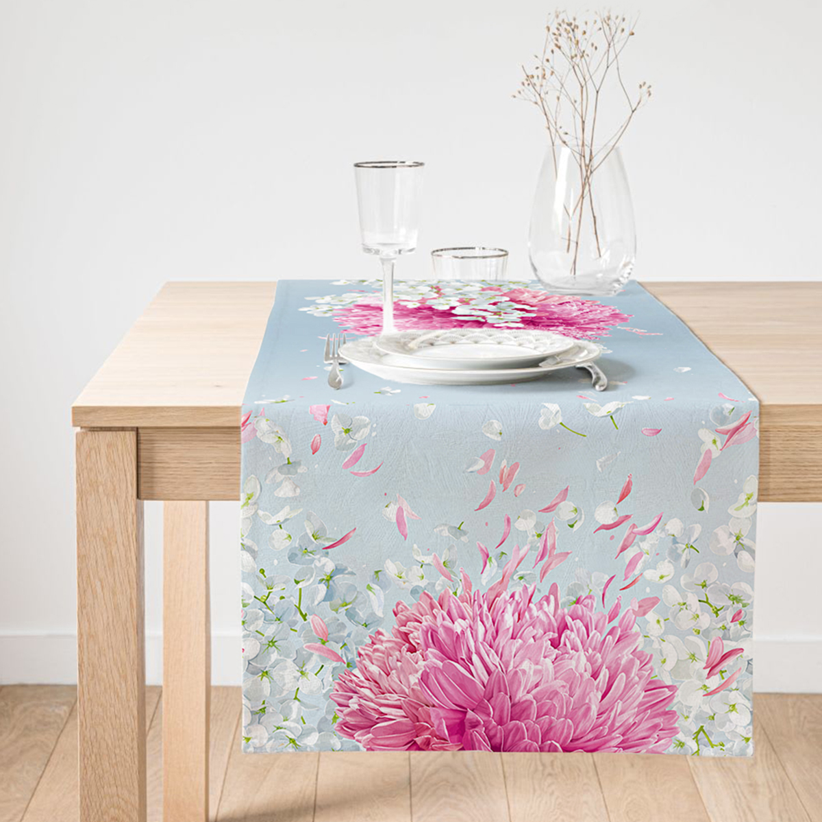 Realhomes Pastel Zeminli Rengarenk Ortanca Çiçek Dijital Baskılı Özel Tasarım Süet Runner