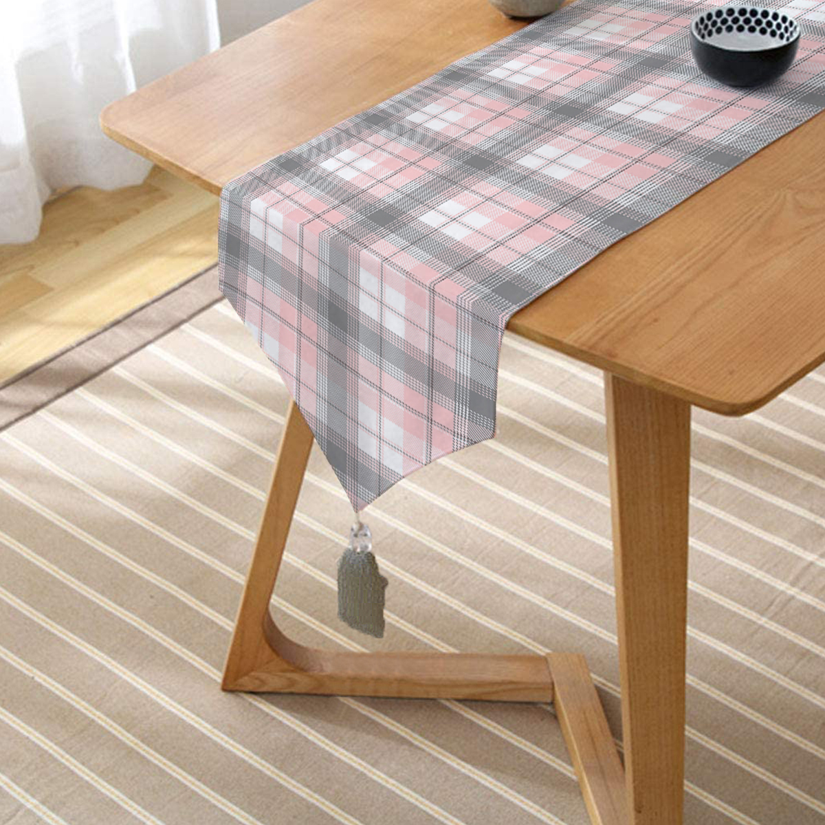 Realhomes Pembe Gri Ekose Desenli Dekoratif Özel Tasarım Püsküllü Şönil Üçgen Runner Realhomes