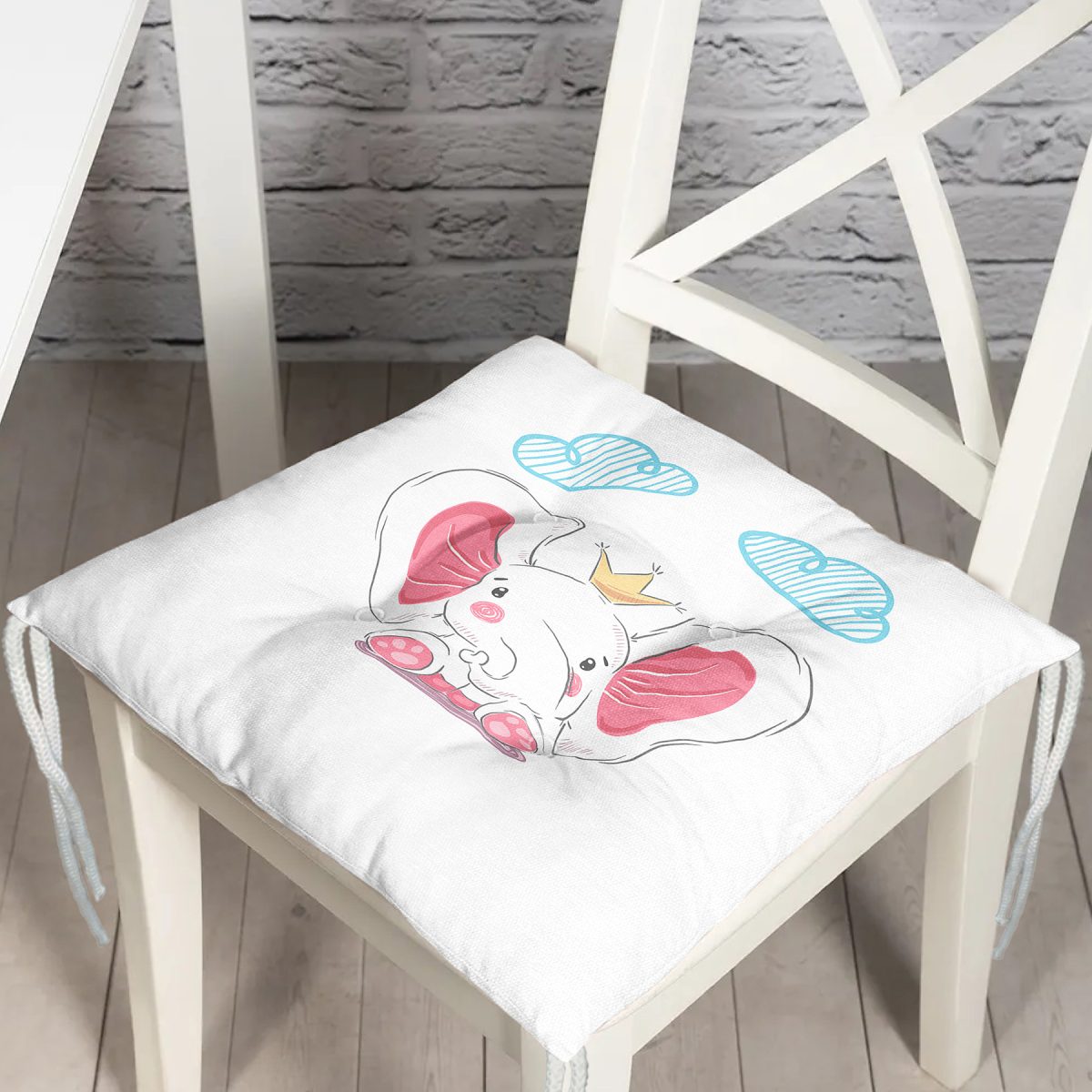 Realhomes Pembe Sevimli Fil Tasarımlı Modern Pofuduk Sandalye Minderi Realhomes