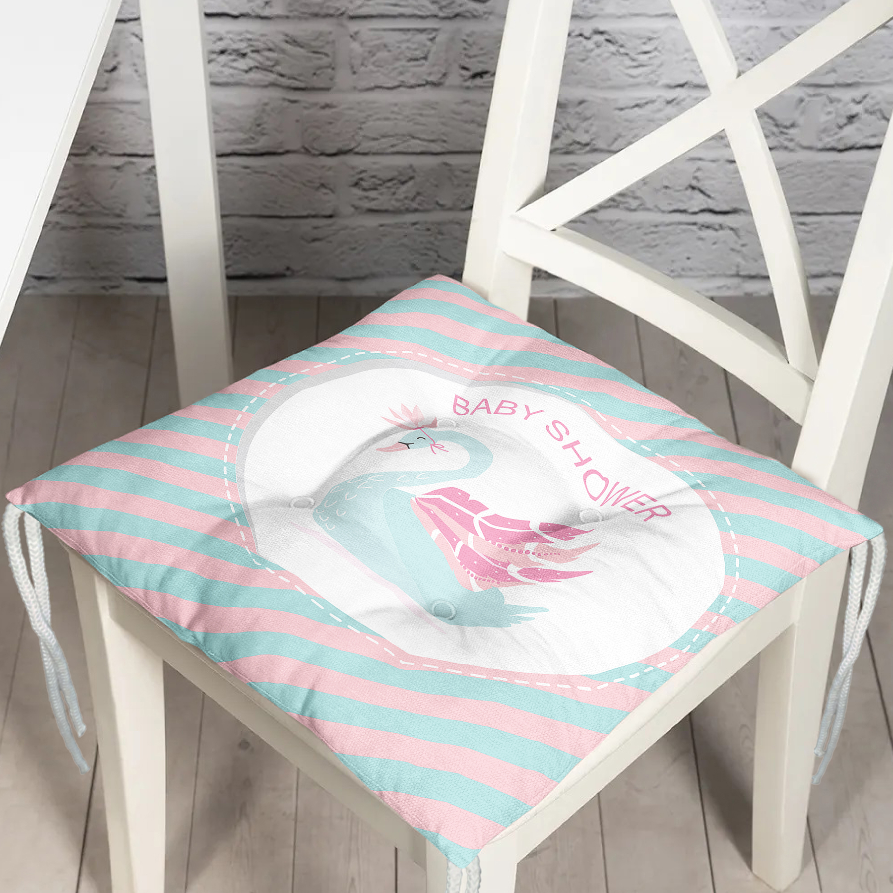 Realhomes Pembe Yeşil Çizgili Kuğu Tasarımlı Modern Pofuduk Sandalye Minderi
