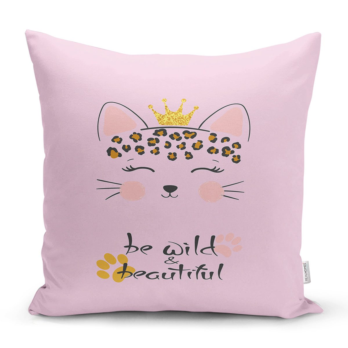 Realhomes Pembe Zeminde Be Wild & Beautiful Temalı Modern Yastık Kırlent Kılıfı