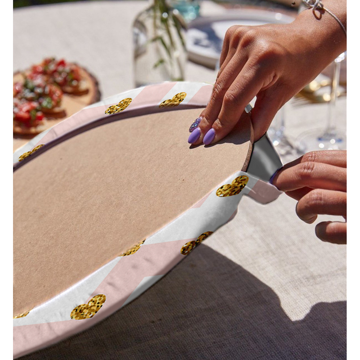 Realhomes Pembe Zigzag Desenli Altın Detaylı Modern 2'li Yuvarlak Servis Altlığı - Supla Realhomes