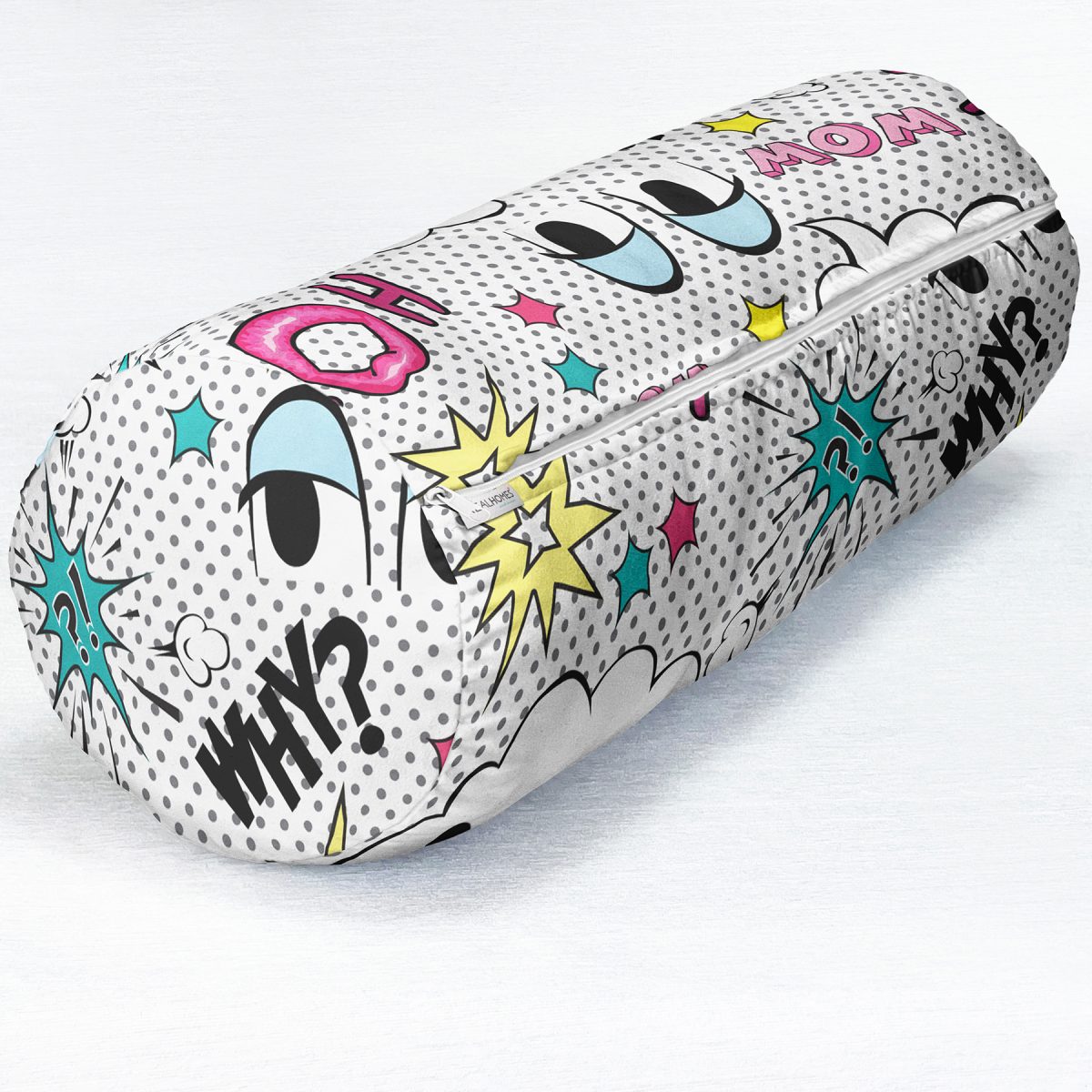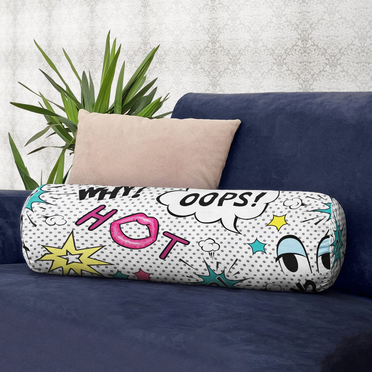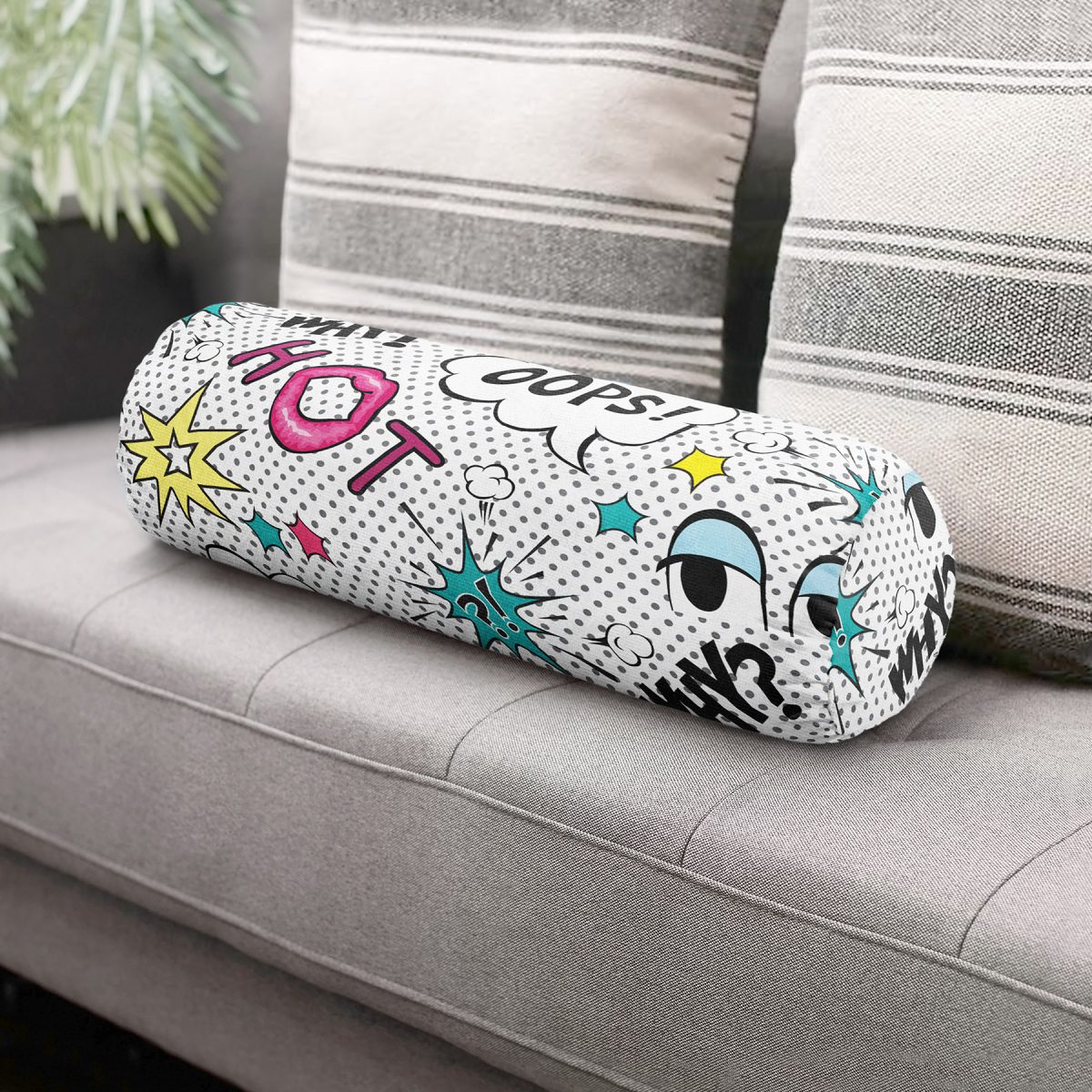 Realhomes Puanlı Pop Art Tasarımlı Dijital Baskılı Modern İç Dolgulu – Fermuarlı Süet Berjer Silindir Yastık Kırlent