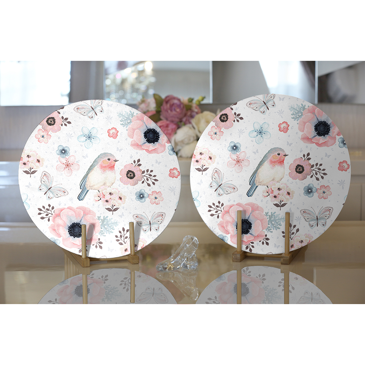 Realhomes Pudra Mavi Kelebek Çiçek Modern Dijital Baskılı 2’li Yuvarlak Servis Altlığı – Supla