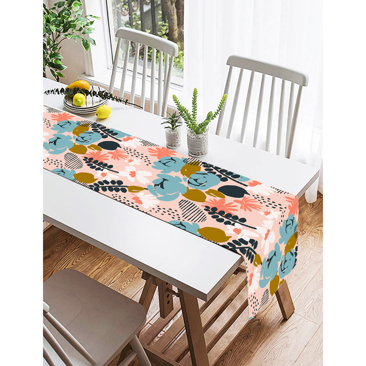 Realhomes Pudra Zemin Üzerinde Onedraw Çizimli Yaprak Desenli Dijital Baskılı Özel Tasarım Süet Runner Realhomes