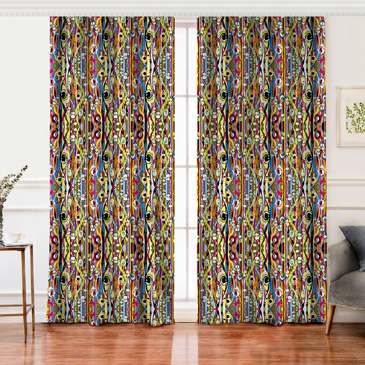 Realhomes Rengarenk Ogea Motifli Özel Tasarımlı Salon Fon Perde