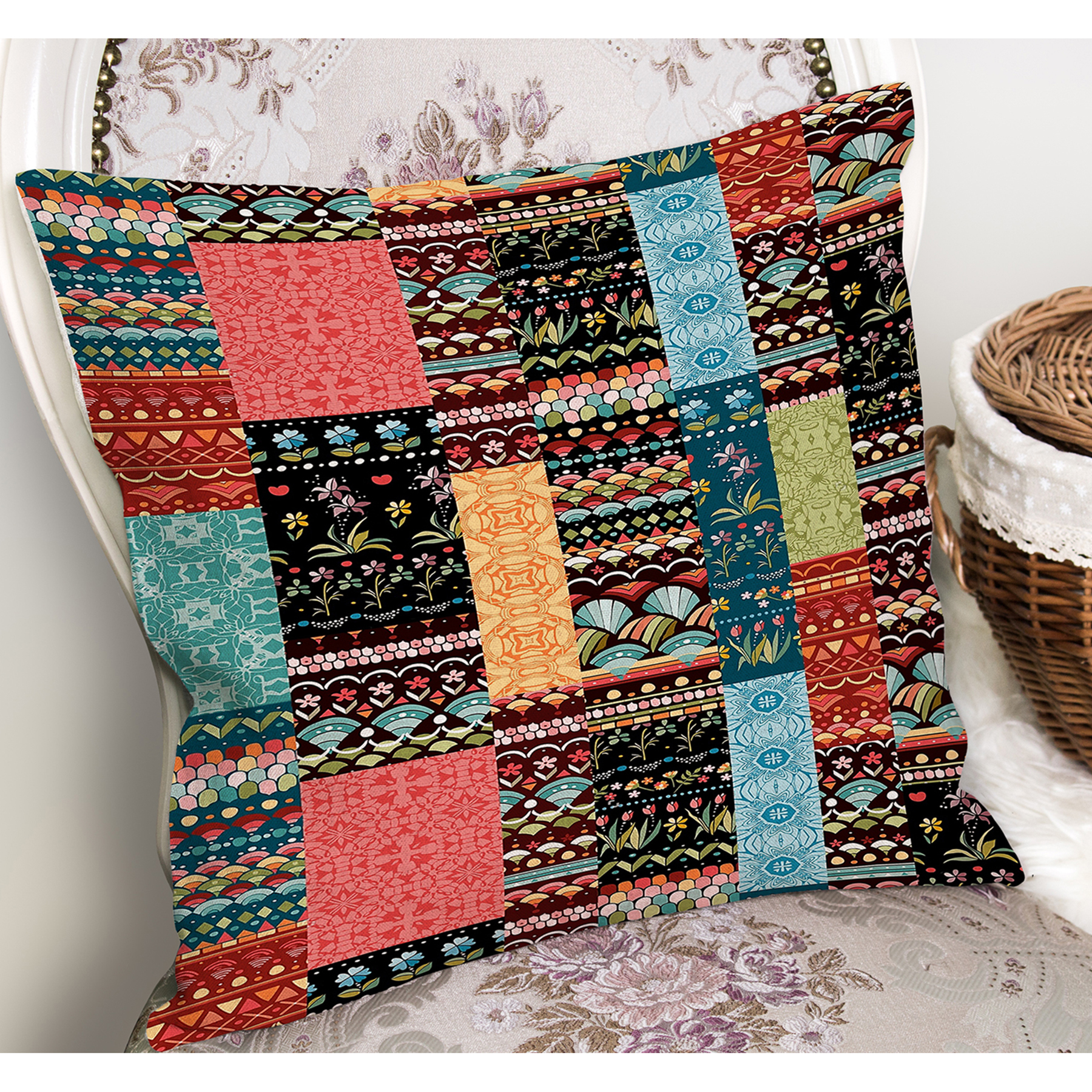 RealHomes Çok Renkli Patchwork Motifli Geleneksel Desenli Dijital Baskılı Yastık Kırlent Kılıfı Orijinal fiyat: 159,99 ₺.Şu andaki fiyat: 149,99 ₺.