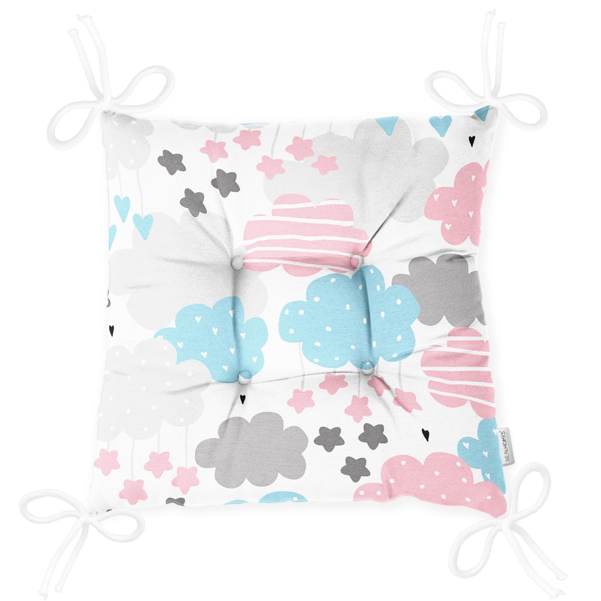 Realhomes Renkli Bulutlar Tasarımlı Dijital Baskılı Modern Pofuduk Sandalye Minderi