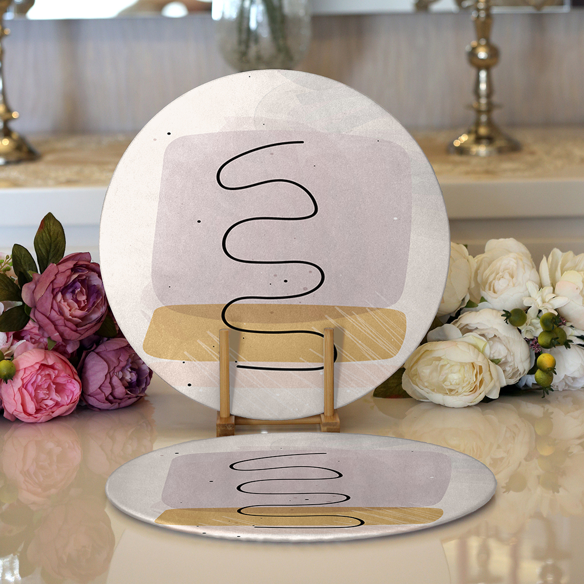 Realhomes Renkli Onedraw Çizimli Dijital Baskılı Modern 2'li Yuvarlak Servis Altlığı - Supla Realhomes