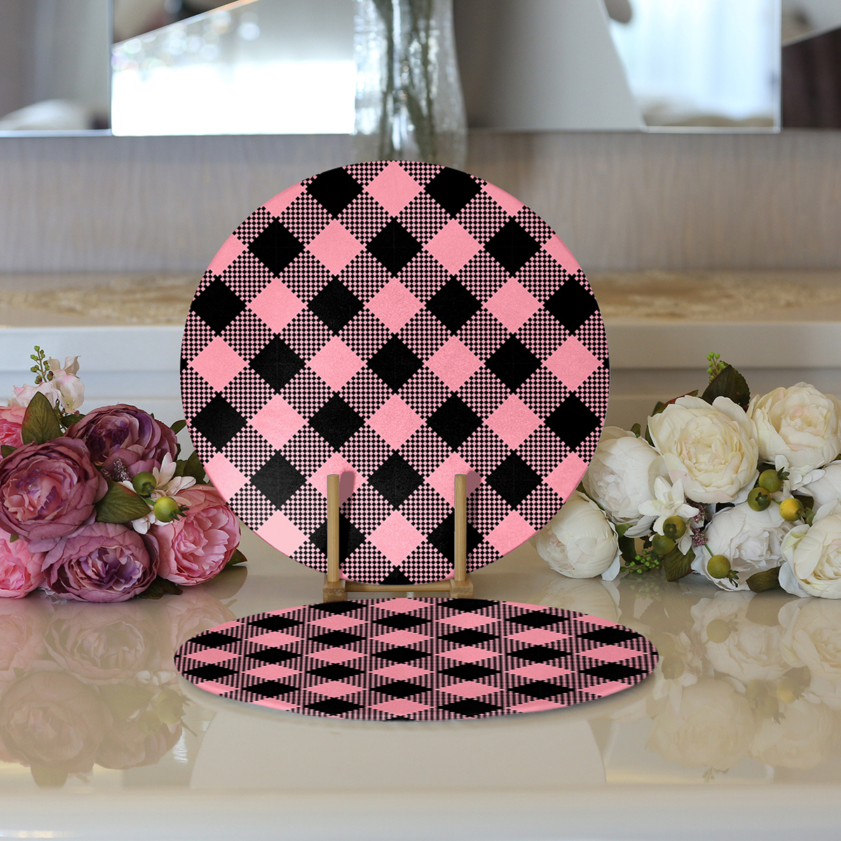 Realhomes Renkli Pastel Zemin Üzerinde Siyah Ekose Desenli Modern 2'li Yuvarlak Servis Altlığı - Supla Realhomes