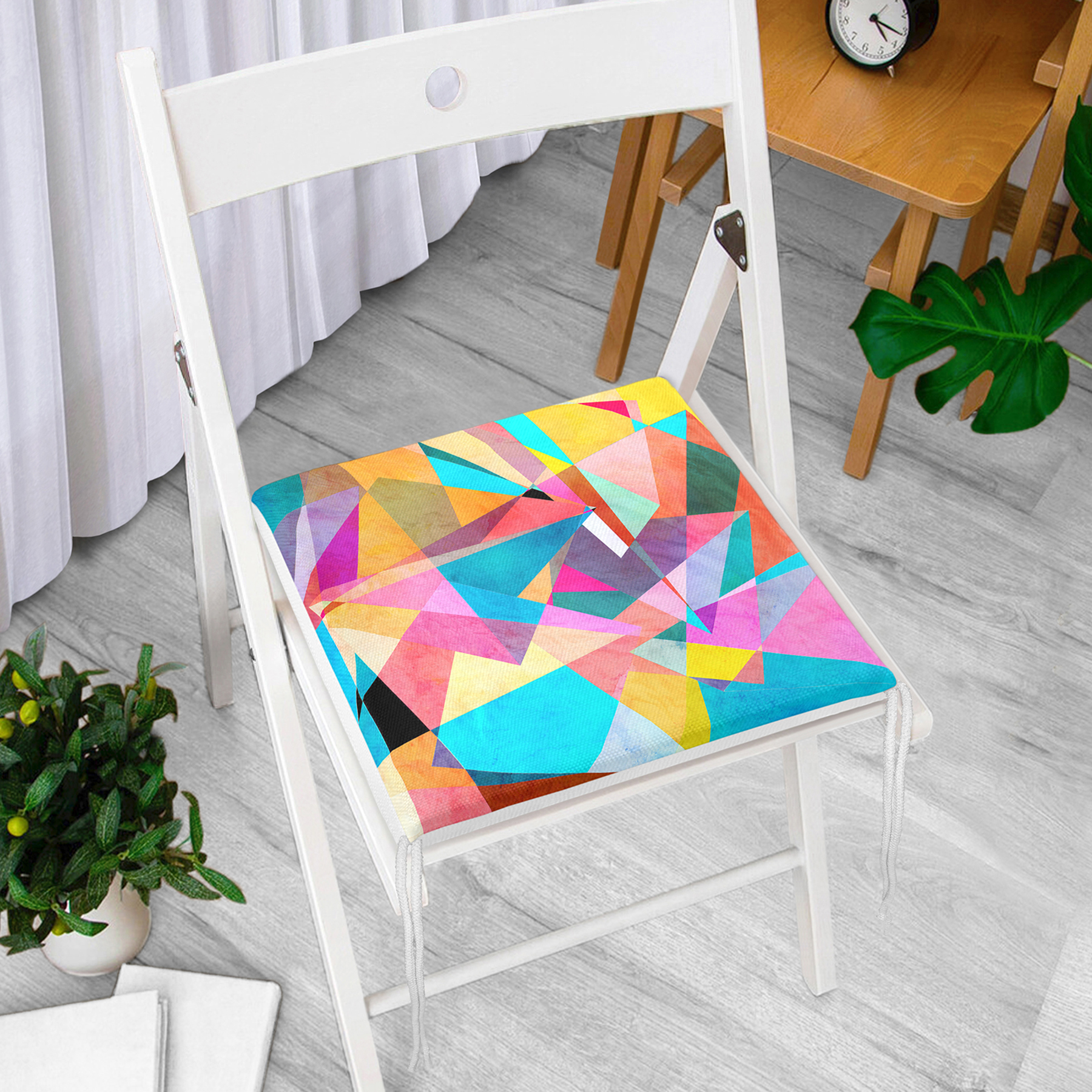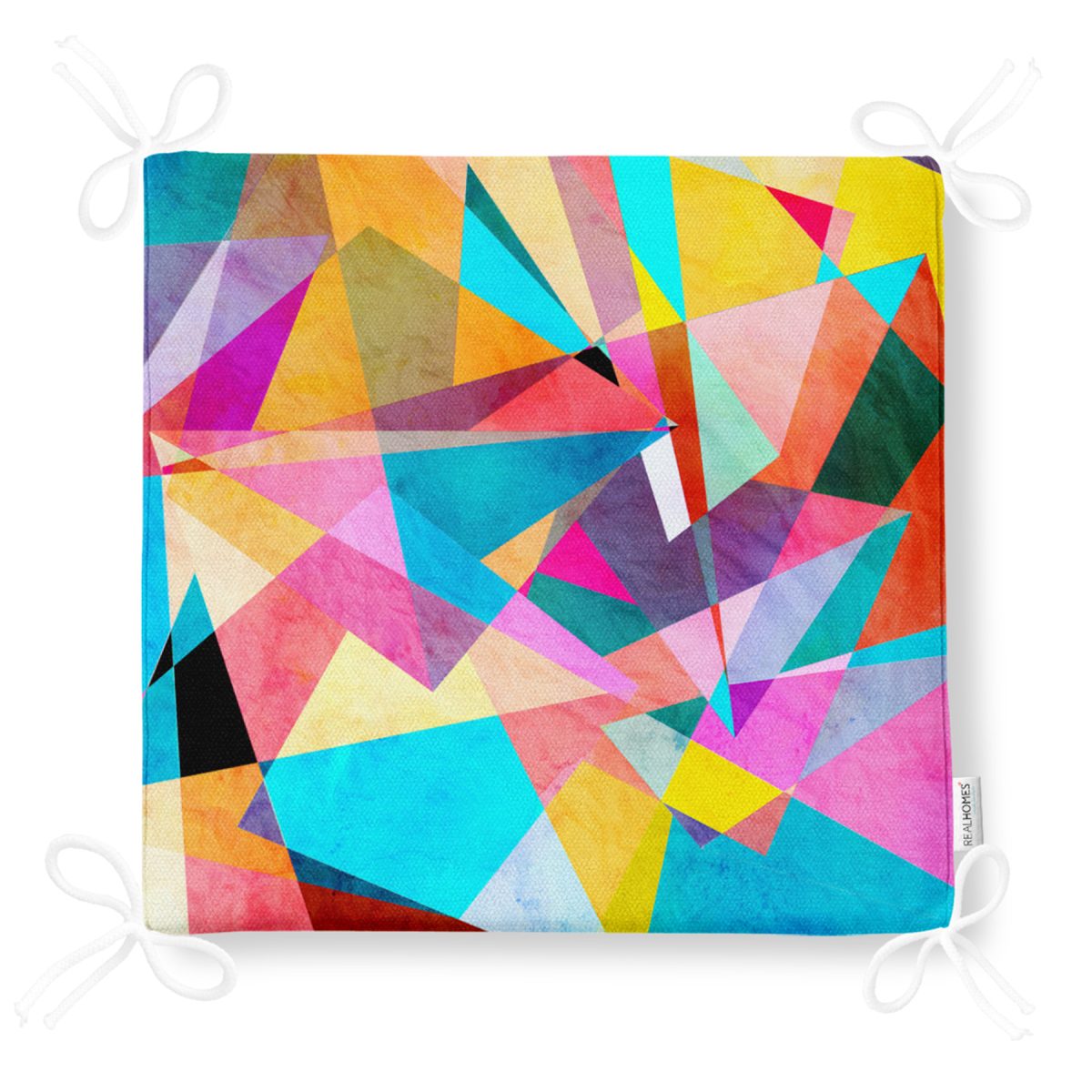 Realhomes Renkli Üçgenler Dijital Baskılı Modern Fermuarlı Sandalye Minderi