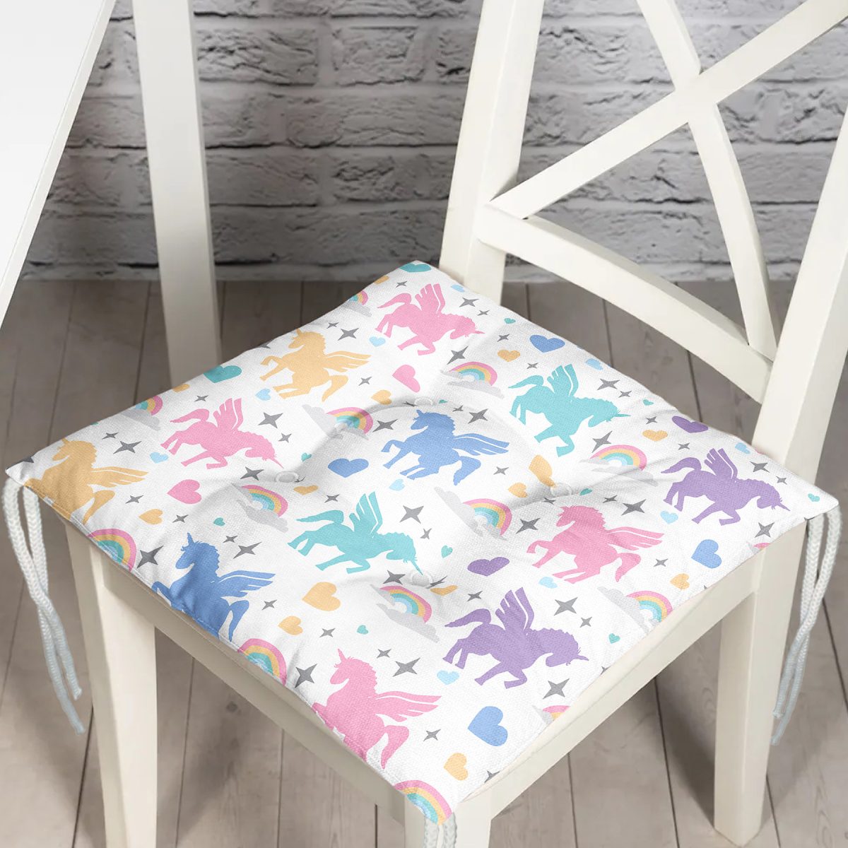 Realhomes Renkli Unicorn At Tasarımlı Dijital Baskılı Modern Pofuduk Sandalye Minderi Realhomes
