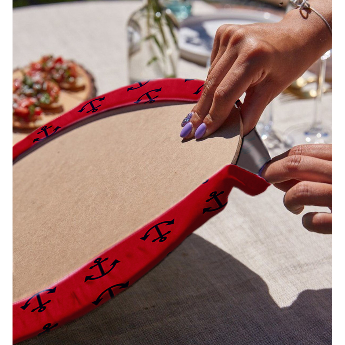 Realhomes Renkli Zemin Üzerinde Çapa Desenli Dijital Baskılı Modern 2'li Yuvarlak Servis Altlığı - Supla Realhomes