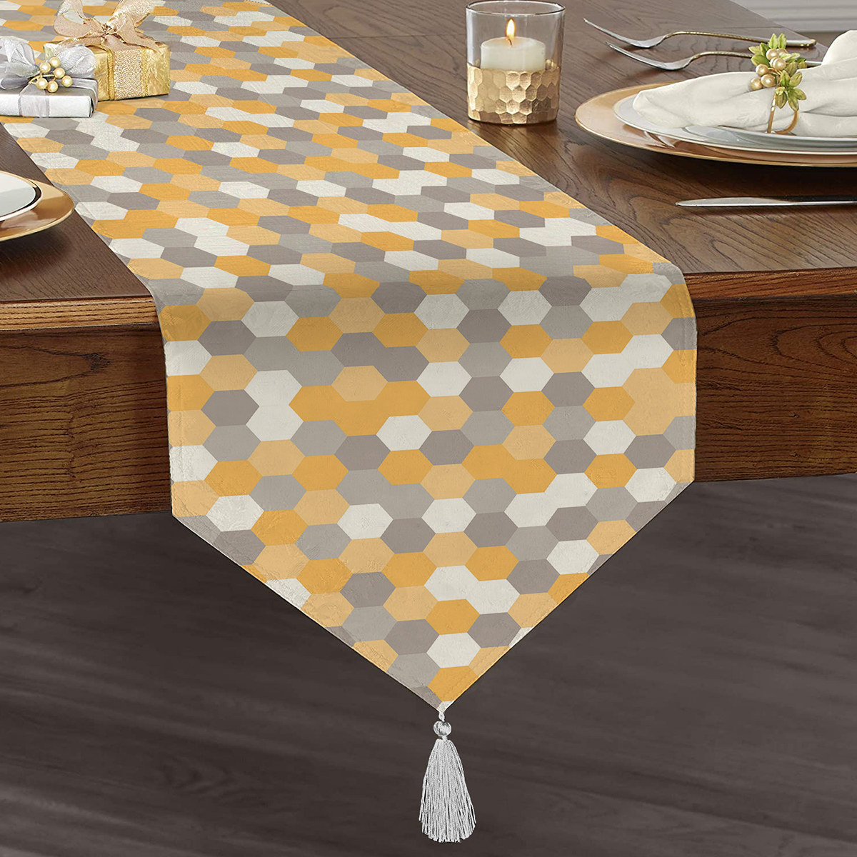 Leke tutmaz özellikli dijital baskılı kumaştan üretilen püsküllü üçgen runnerlar, mutfağınızda, ve yemek odalarında zevkle kullanabileceğiniz şık ve kaliteli ürünlerdir. Günlük kullanıma uygun olduğu gibi özel davetlerinizde de zevkinizi ortaya koyacaktır.