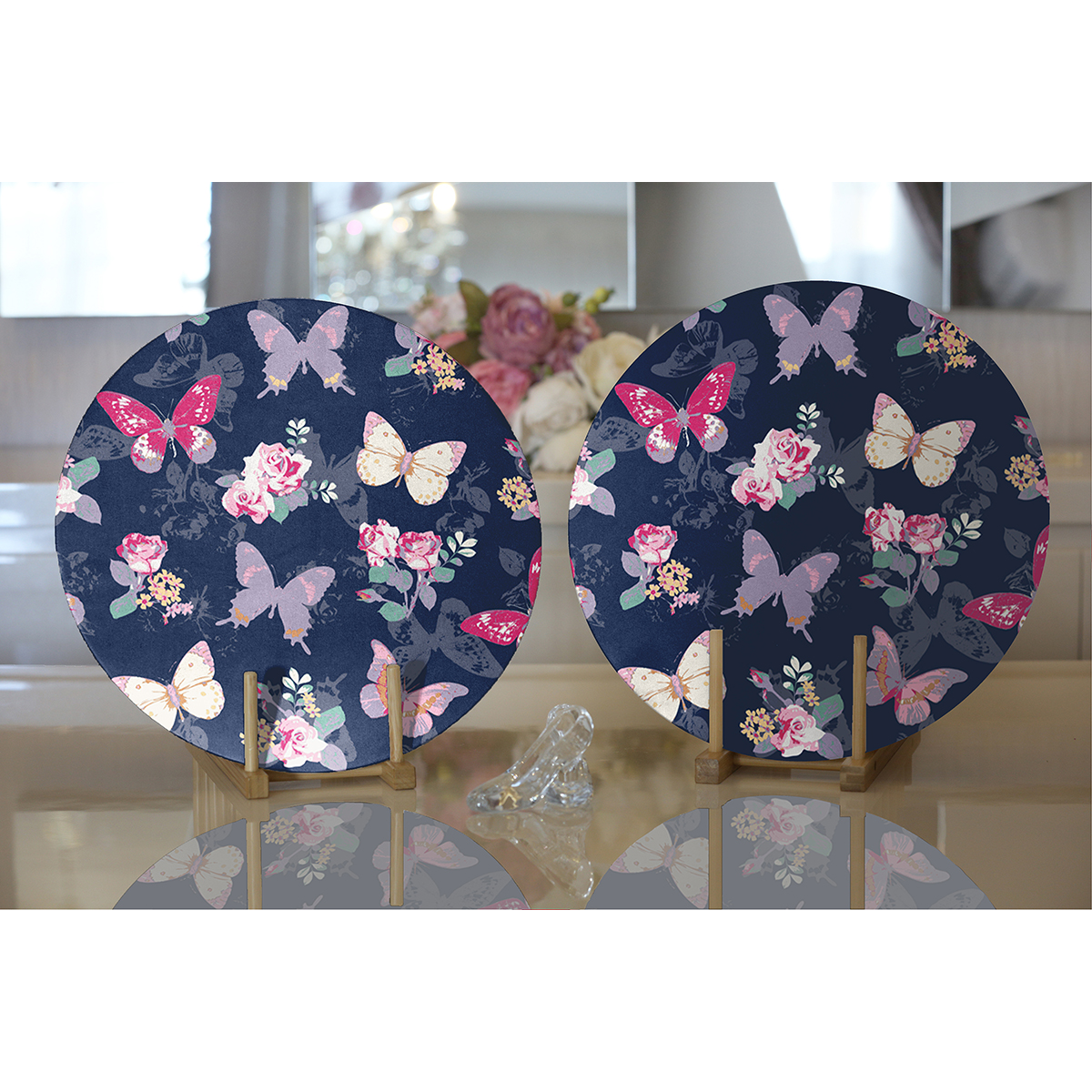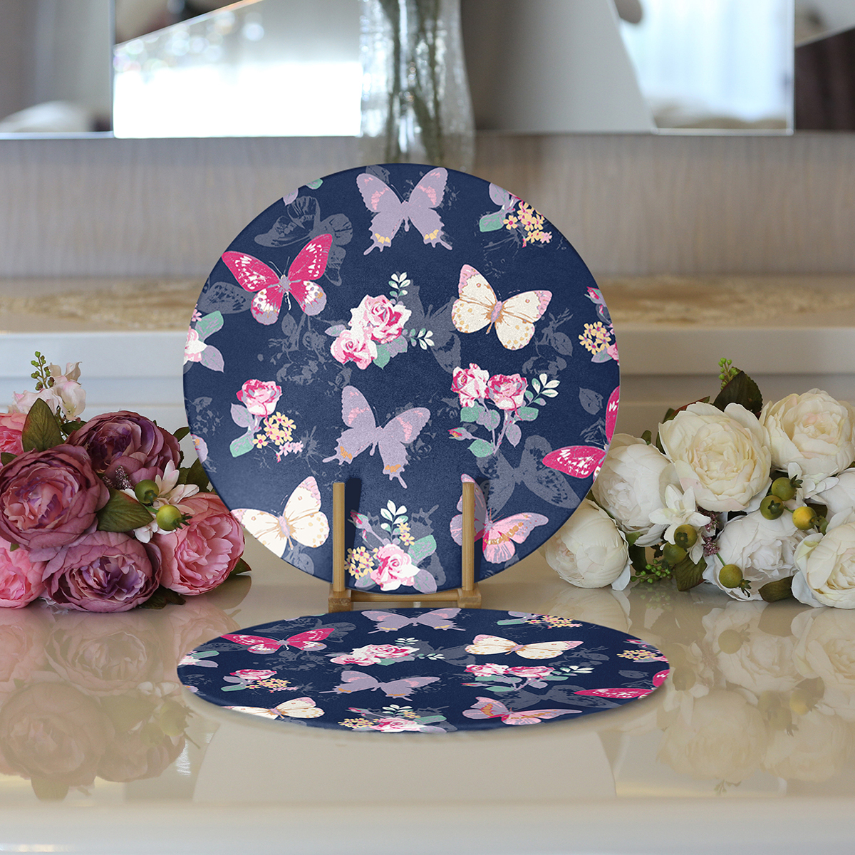Realhomes Renkli Zemin Üzerinde Kelebek Desenli Dijital Baskılı Modern 2’li Yuvarlak Servis Altlığı – Supla