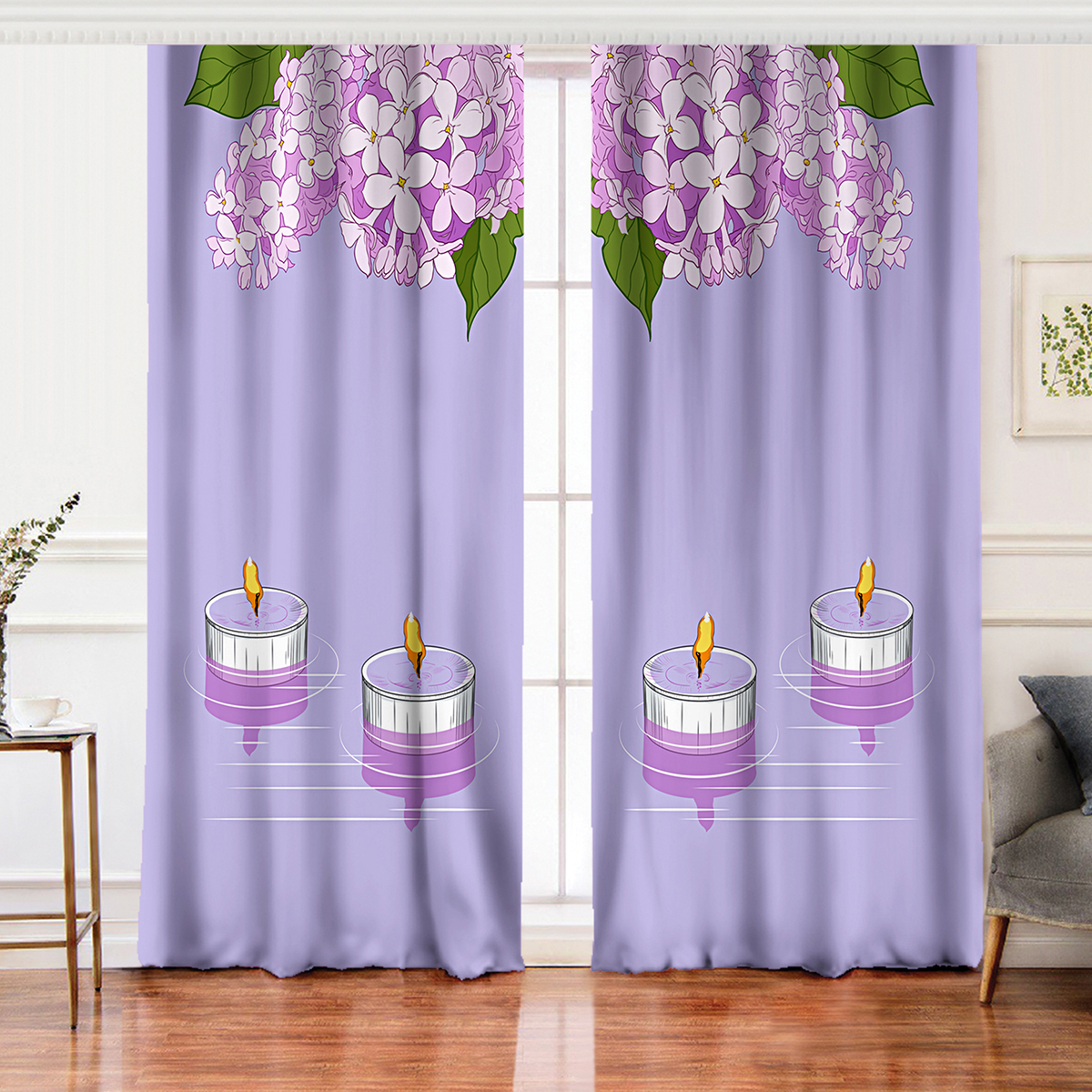 Realhomes Renkli Zemin Üzerinde Mum Desenli Çiçek Motifli Dijital Baskılı Modern Salon Fon Perde