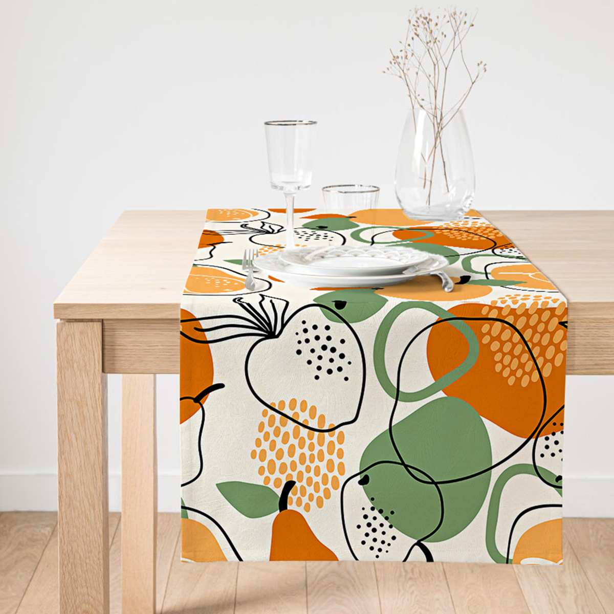 Realhomes Renkli Zemin Üzerinde Onedraw Çizimki Meyva Desenli Dijital Baskılı Özel Tasarım Süet Runner Realhomes