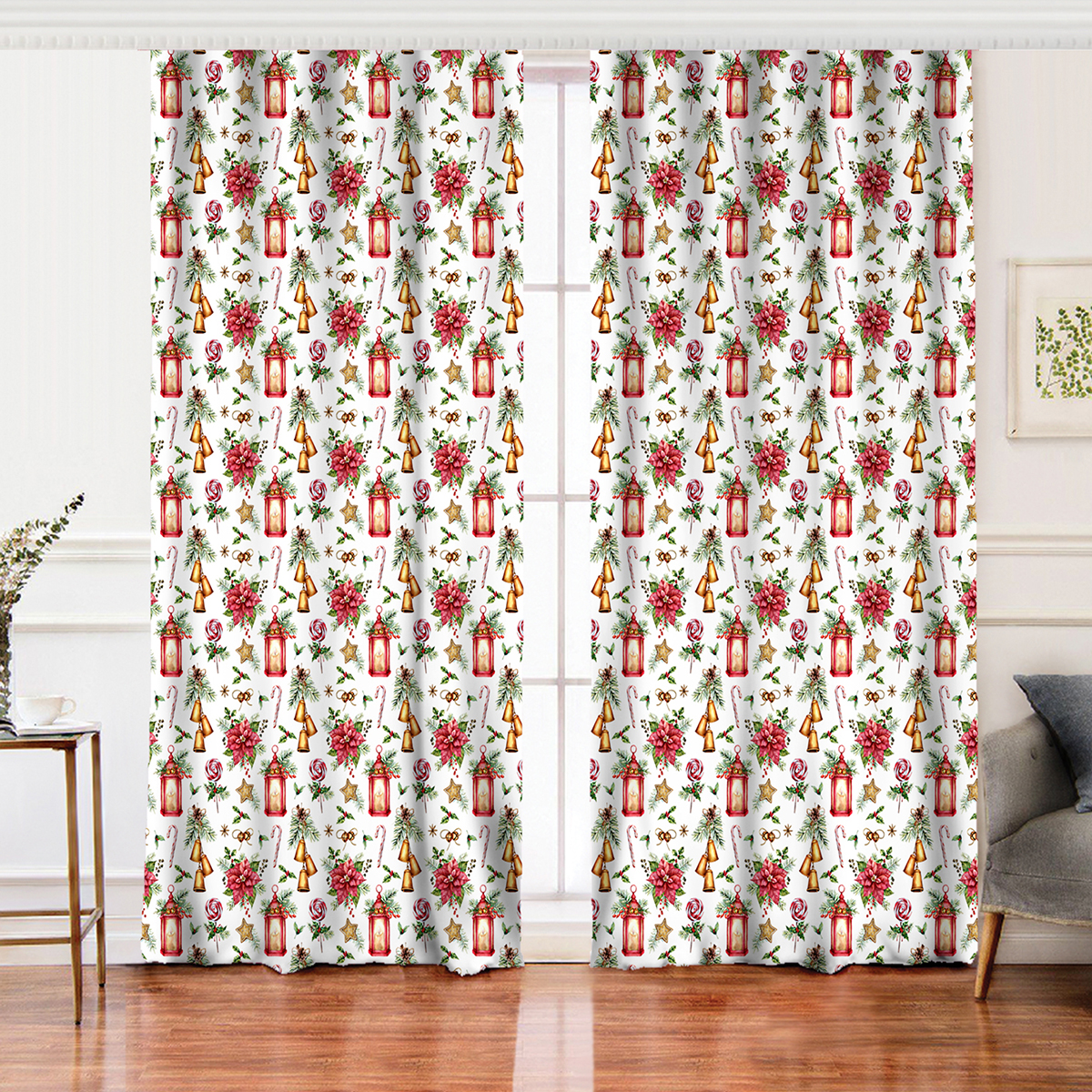 Realhomes Şamdan Tasarımlı Yılbaşı Konseptli Dijital Baskılı Modern Salon Fon Perde
