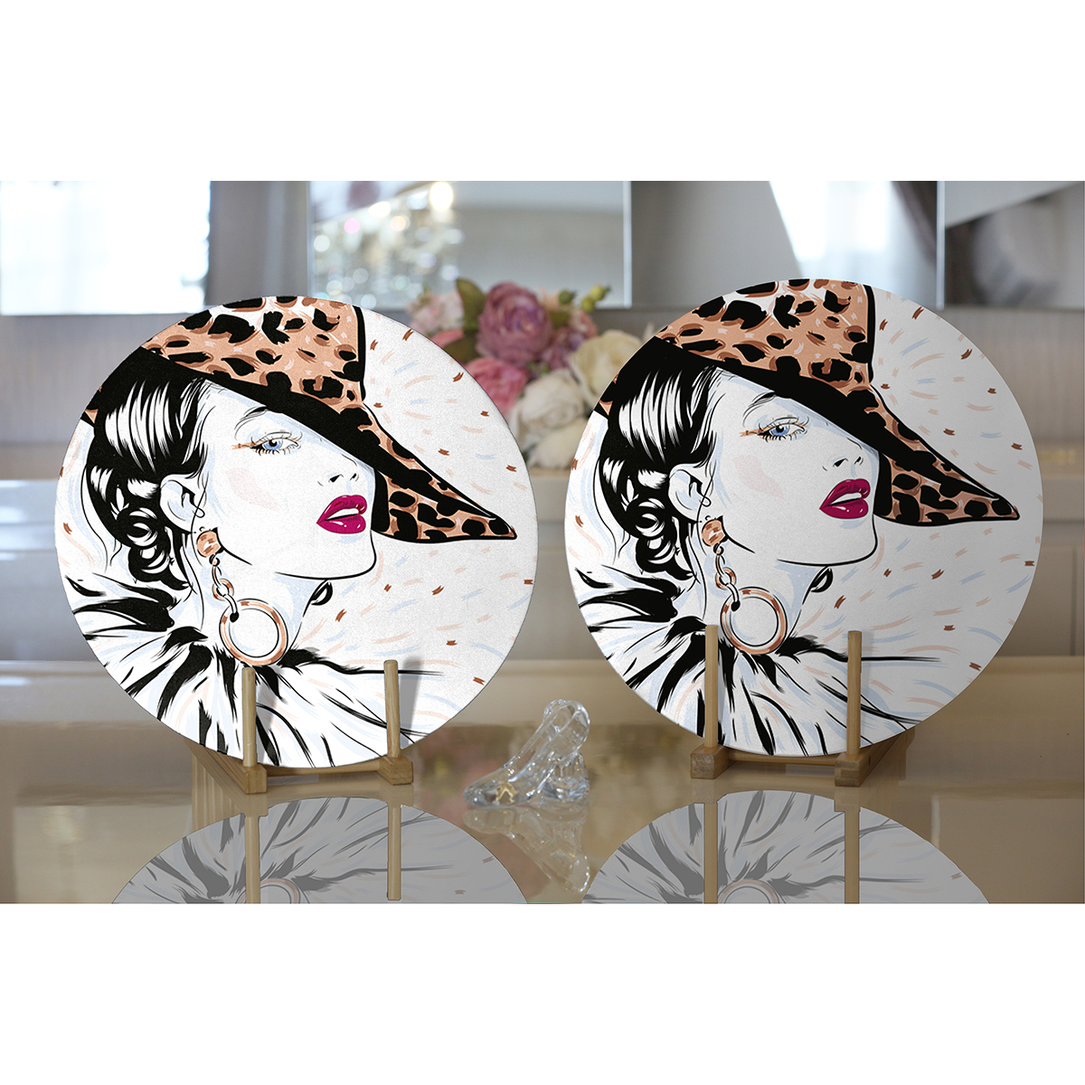 Realhomes Şapkalı Fashion Girl Desenli Modern 2’li Yuvarlak Servis Altlığı – Supla